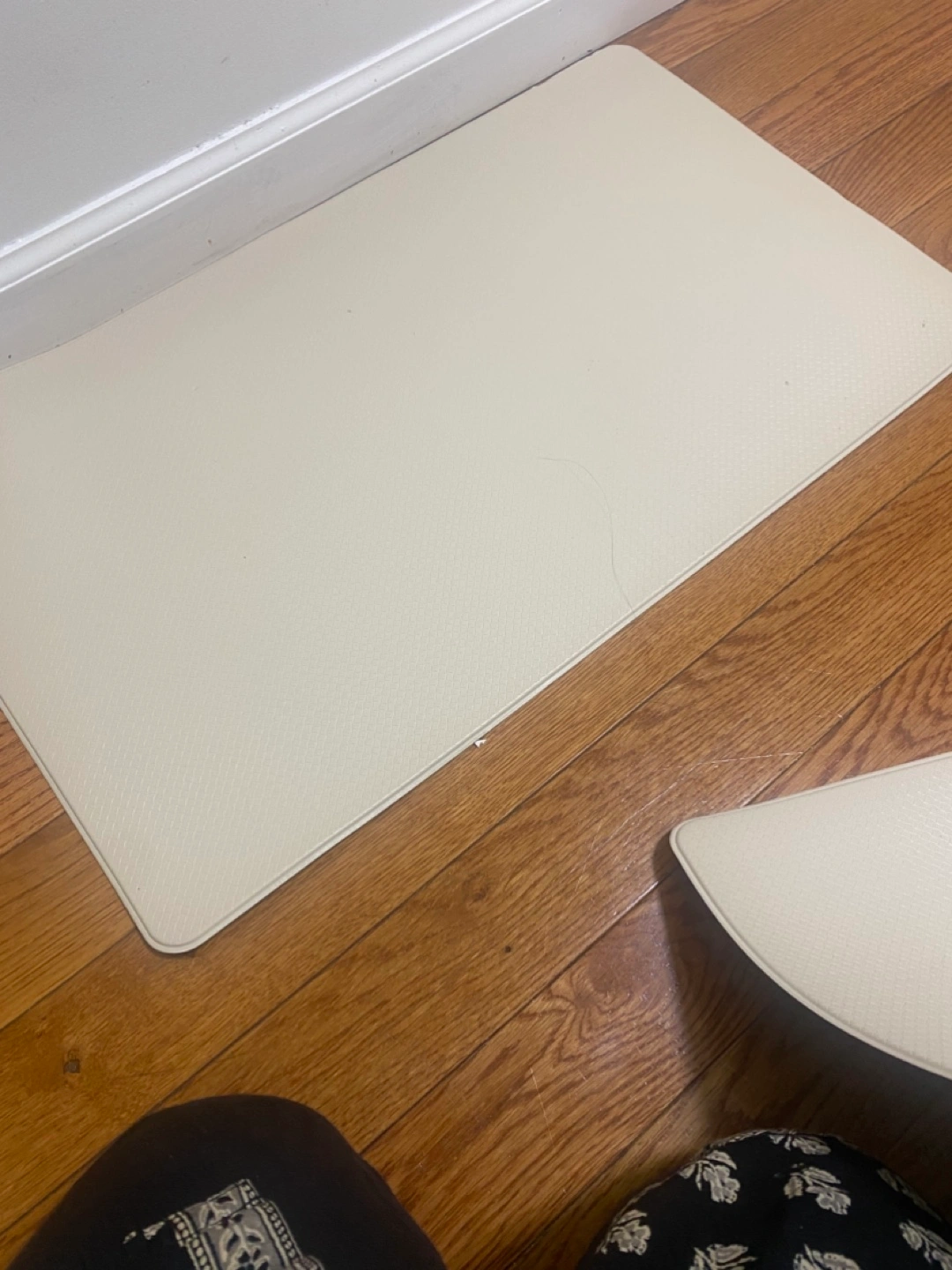 Floor mats in a creamy beige color. Notice the textured design. Perfect for adding a touch of comfort to your living space. I have two of them each one of them is $5 two for $10