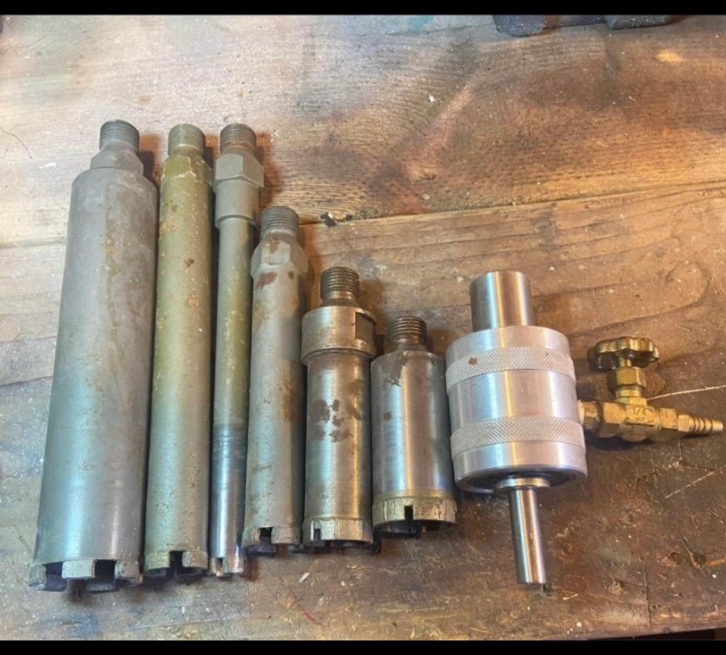 Diamond bits. Sizes 1-1,3/4. 2-1,1/8. 1-1,1/2. 1-1,1/4. 1-3/4” and comes with adapter for the bits that fits any drill. Plus water  attachment. They are never used only one the 3/4. “Bit.