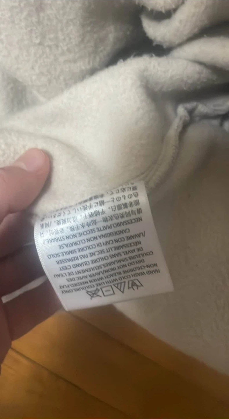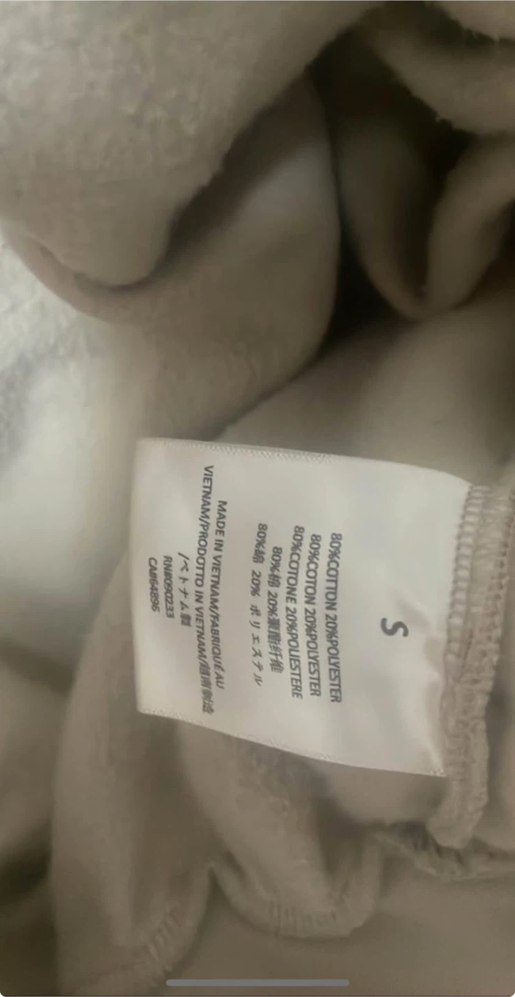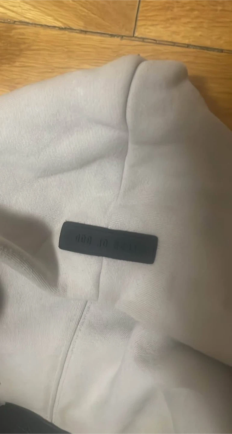 This is a Fear of God Essentials hoodie. It's made of 80% cotton and 20% polyester. Size is small.