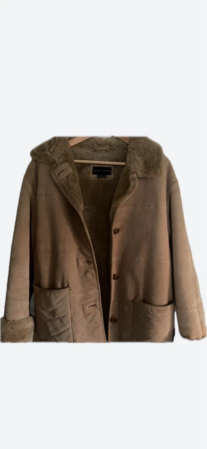 Selling a Gallery brand faux suede jacket. It is a size L and has a faux fur collar and lining. It's in great condition and ready for a new home!
