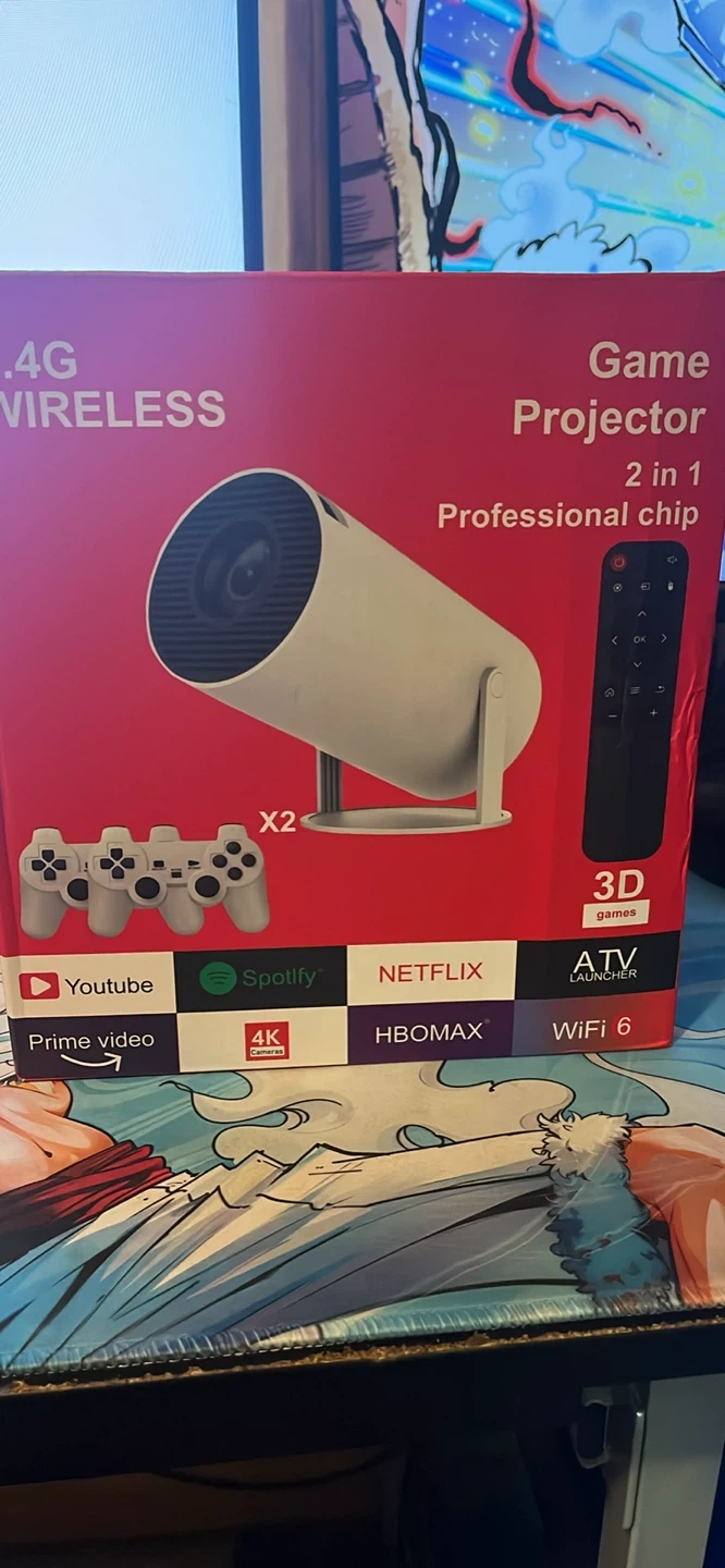 Selling a Game Projector, it's a 2 in 1 model with a professional chip! It supports 3D games and comes with X2 controllers. You can enjoy streaming from Youtube, Spotify, Netflix, Prime Video, and HBO Max. It also supports WiFi 6 and 4K cameras
