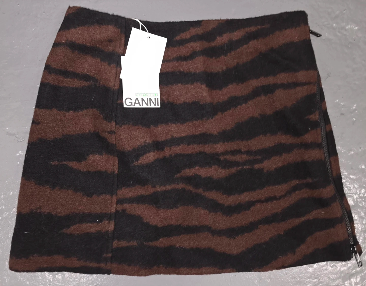 60Selling a Ganni mini skirt with a unique brown and black zebra print! It has a zipper detail and would be a great addition to your wardrobe