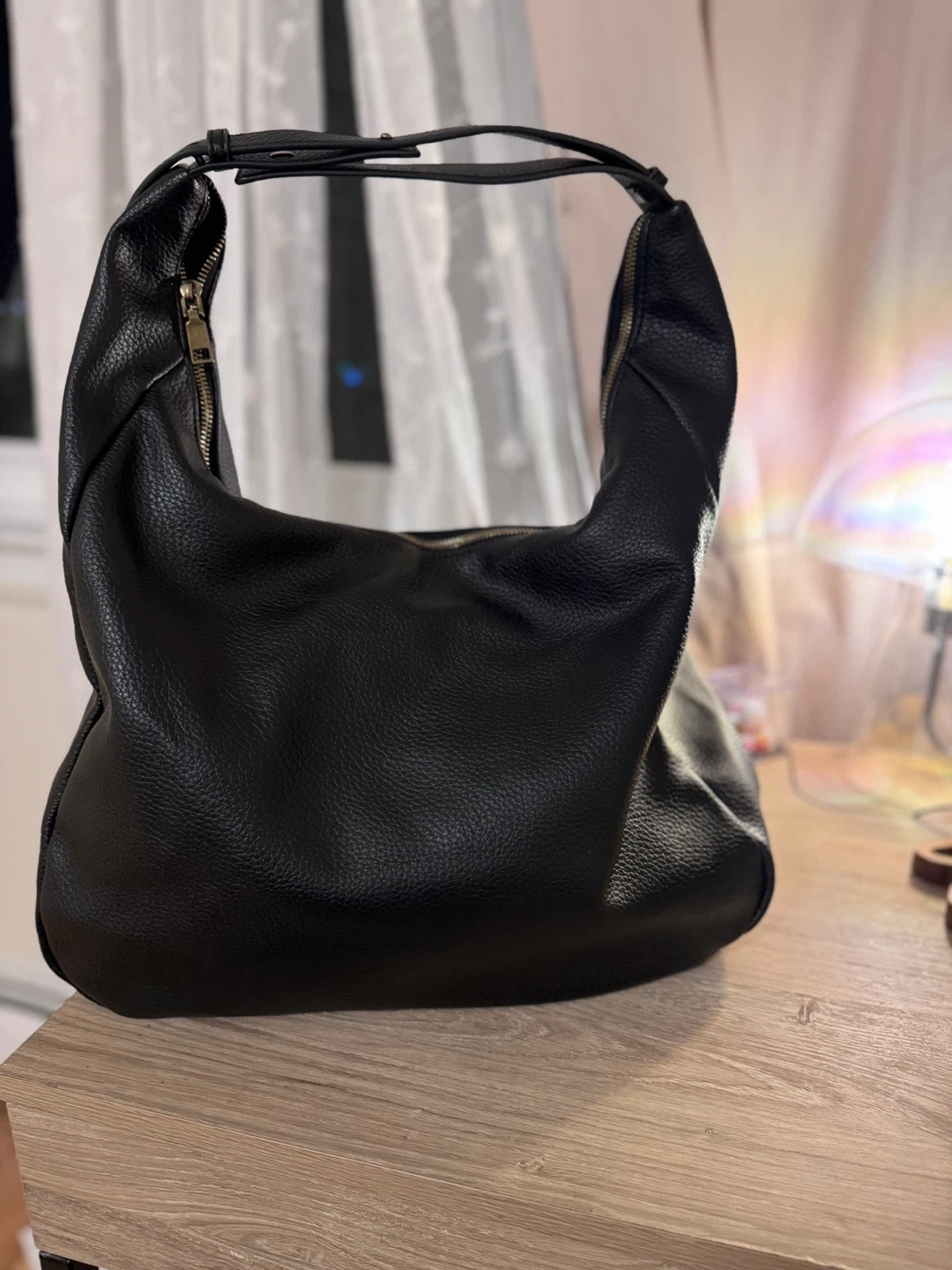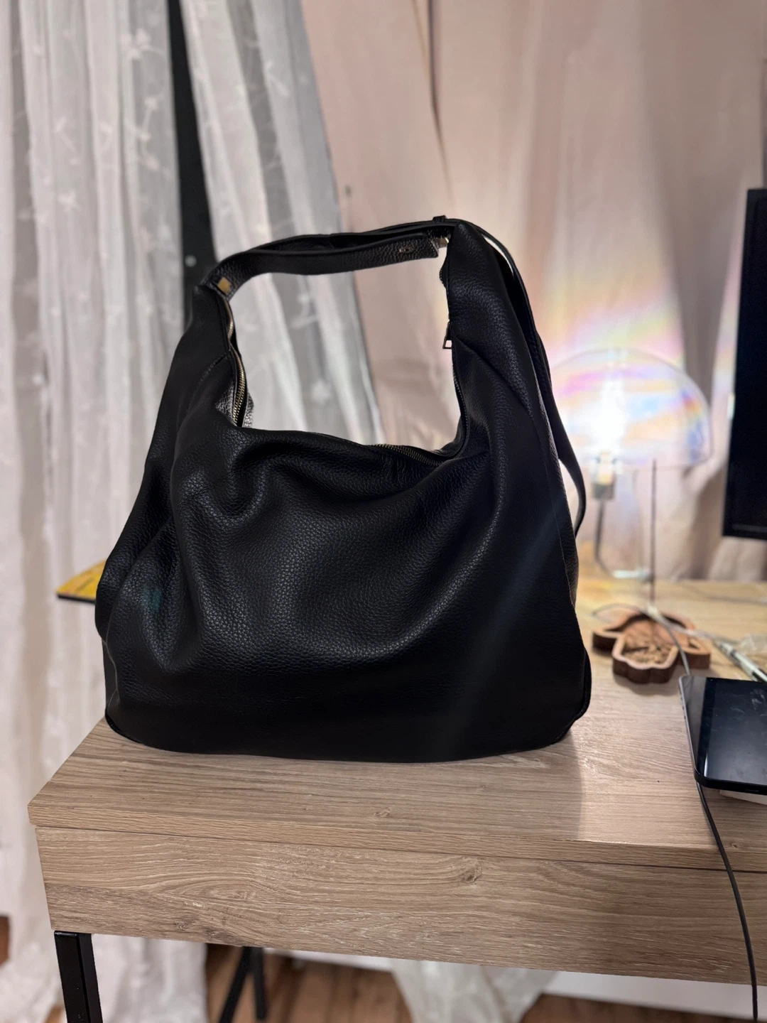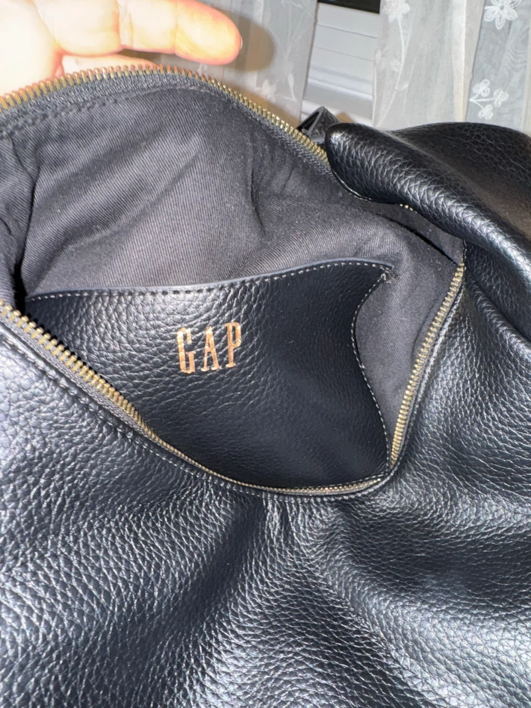 5Selling a gently used GAP black leather hobo bag. It's in great condition and perfect for everyday use! The bag features a soft leather exterior and a spacious interior. Feel free to reach out if you have any questions!
