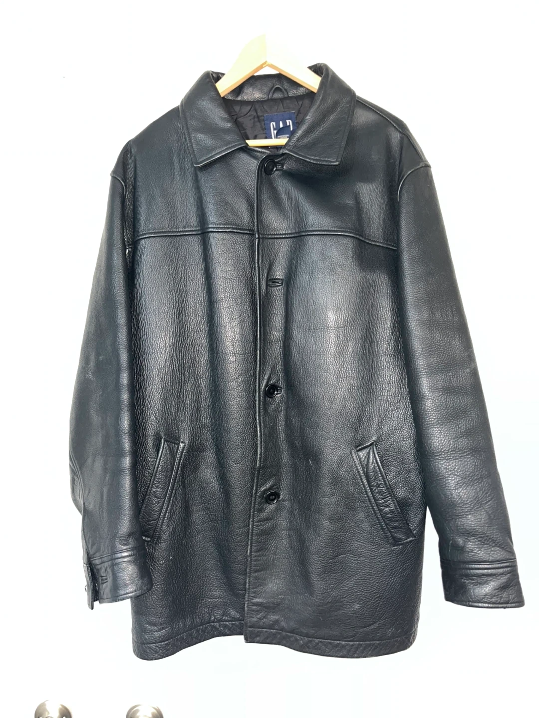 60Here's a classic 3/4 black leather jacket from GAP! It's in great condition and ready for a new home. Perfect for adding a touch of cool to any outfit