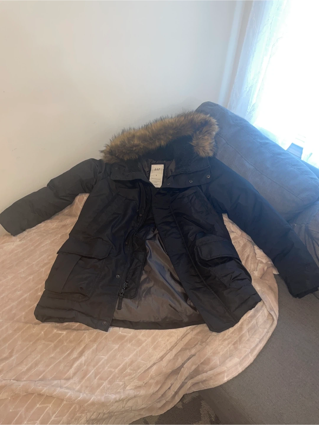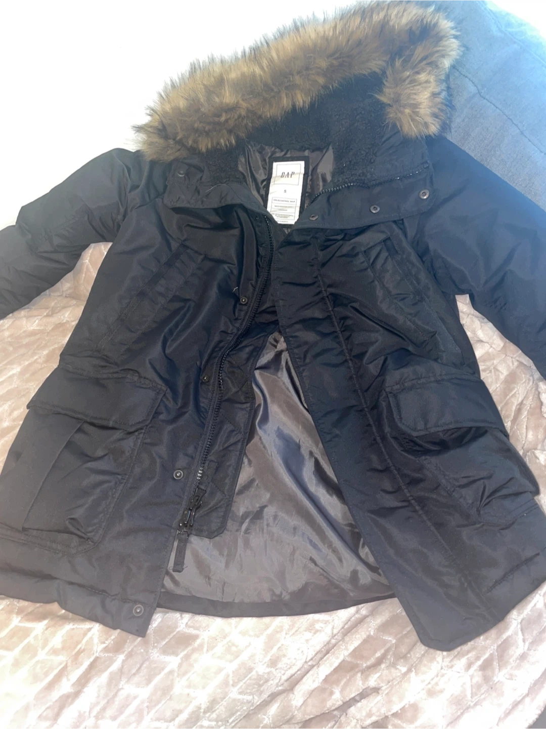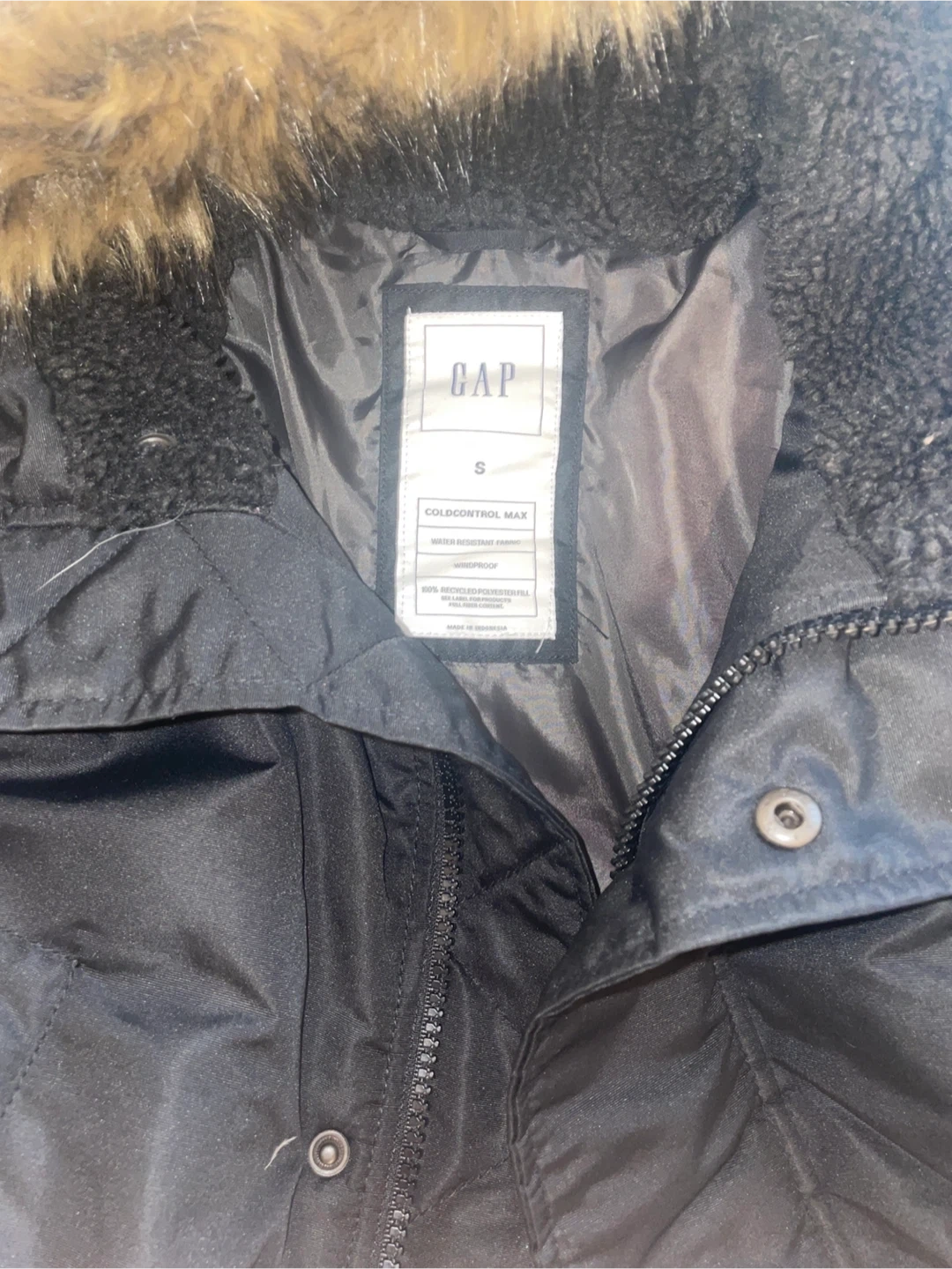 60Selling a GAP ColdControl Max puffer jacket in black. It's a size small and features a faux fur hood. Perfect for staying warm!