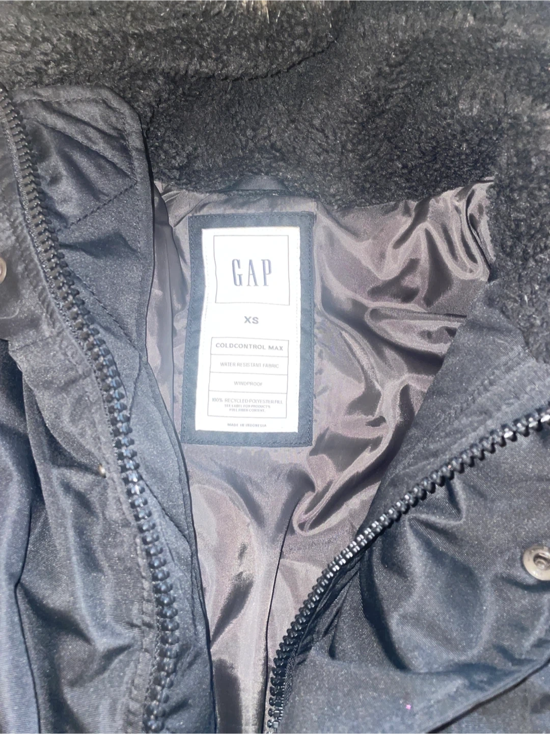 75Selling a GAP ColdControl Max winter jacket in size XS. It's black and features a water-resistant fabric and windproof design. Perfect for staying warm and dry this winter!