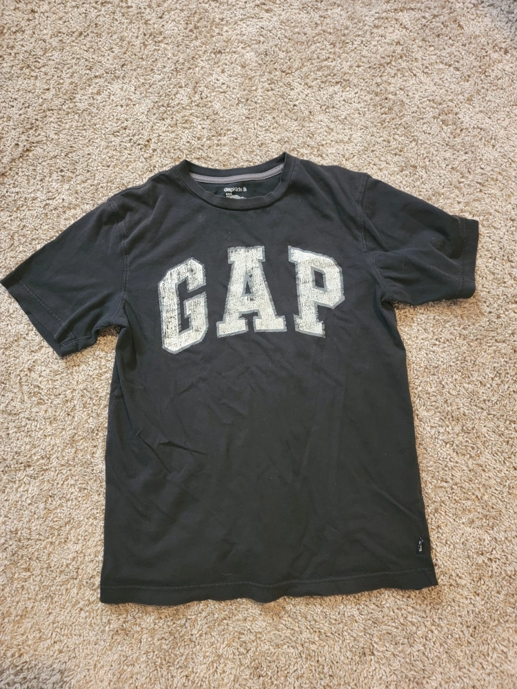Selling a black Gap Kids t-shirt in size S. It has the classic GAP logo on the front. Great for everyday wear!
