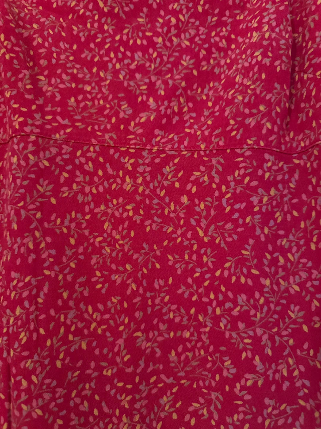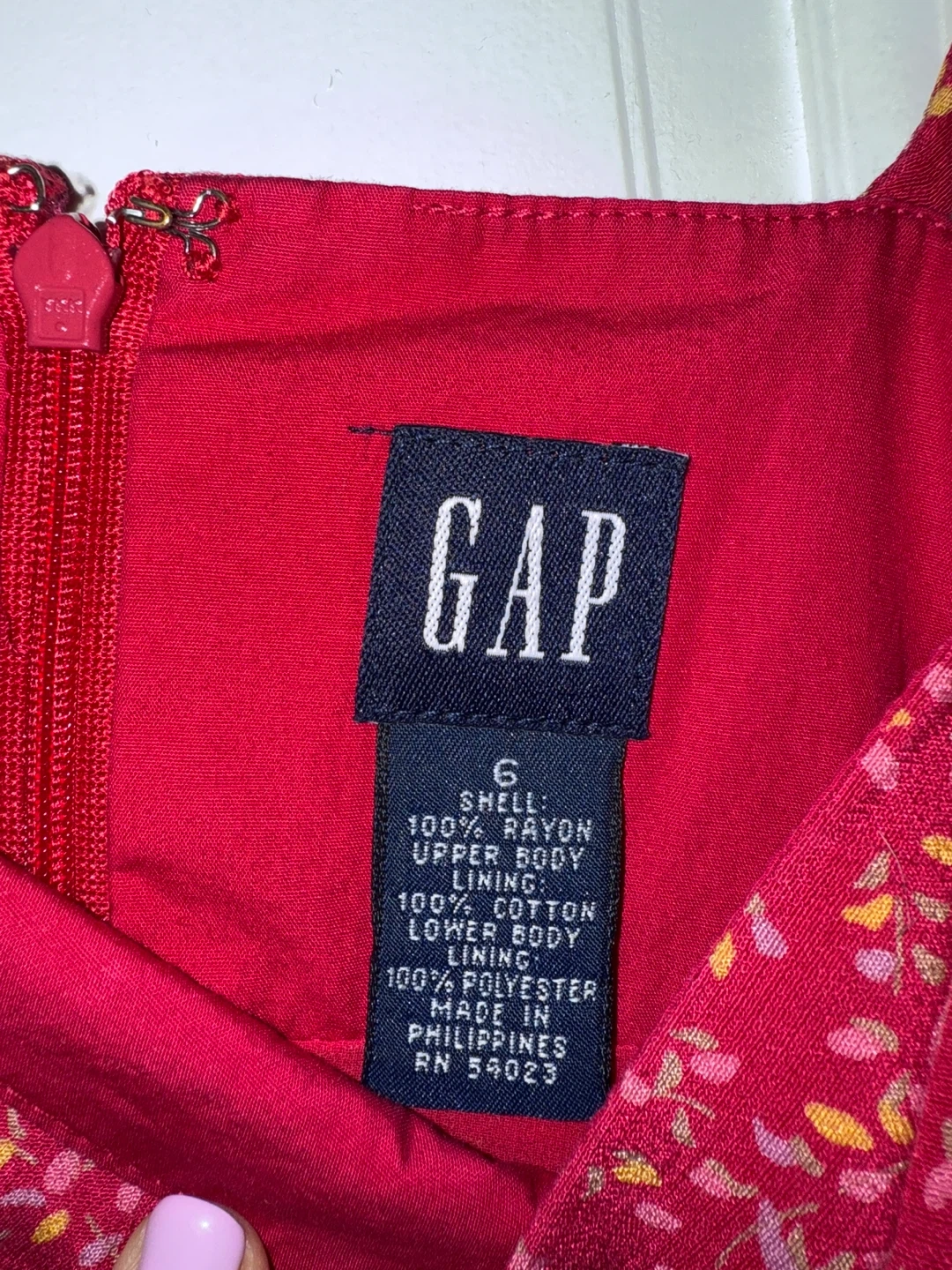 Selling a cute GAP dress! It's a size 6 and has a lovely red floral pattern. The shell is 100% rayon, with the upper body lining also rayon. The lower body lining is 100% cotton, and the lining is 100% polyester