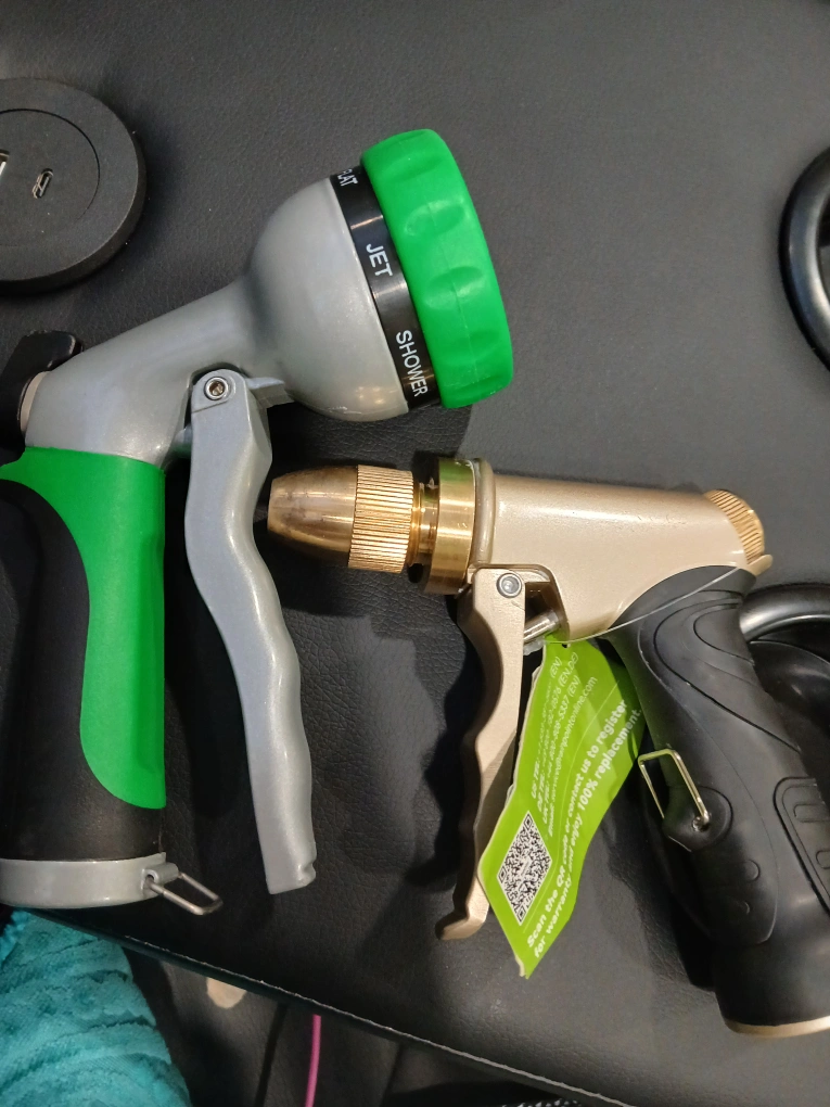 Selling a garden hose nozzle sprayer. It has multiple spray patterns to suit different watering needs. Great for gardening, car washing, and more!