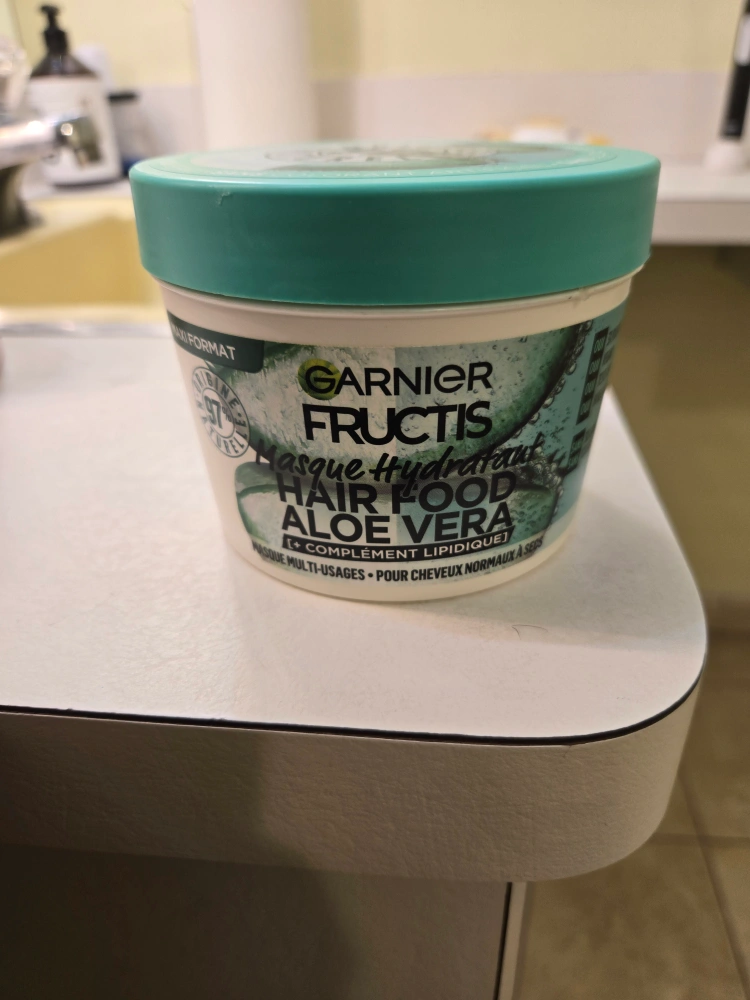 74Large container of Garnier Fructis Hair Food Aloe Vera mask. Multi-use mask for normal to dry hair. imported from france