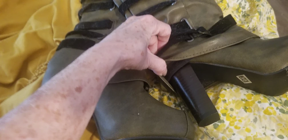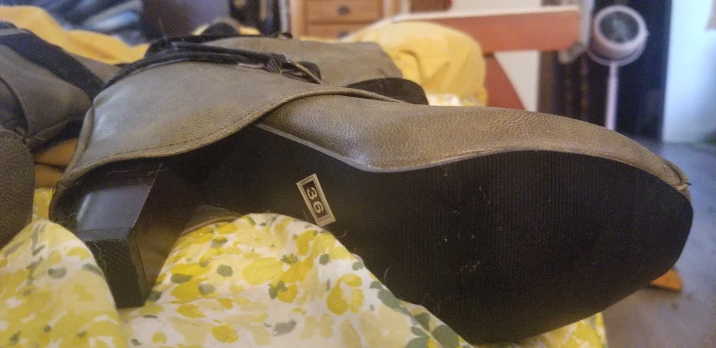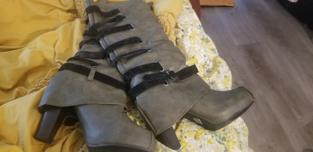 size 6 fasion boots. Pull on no zipper. I can't wear high heels any longer cute no name boots. Good for a fun look