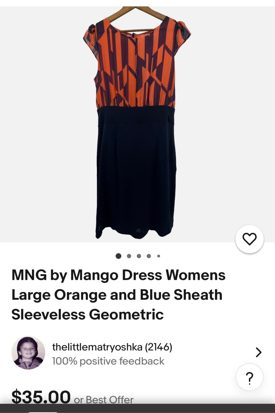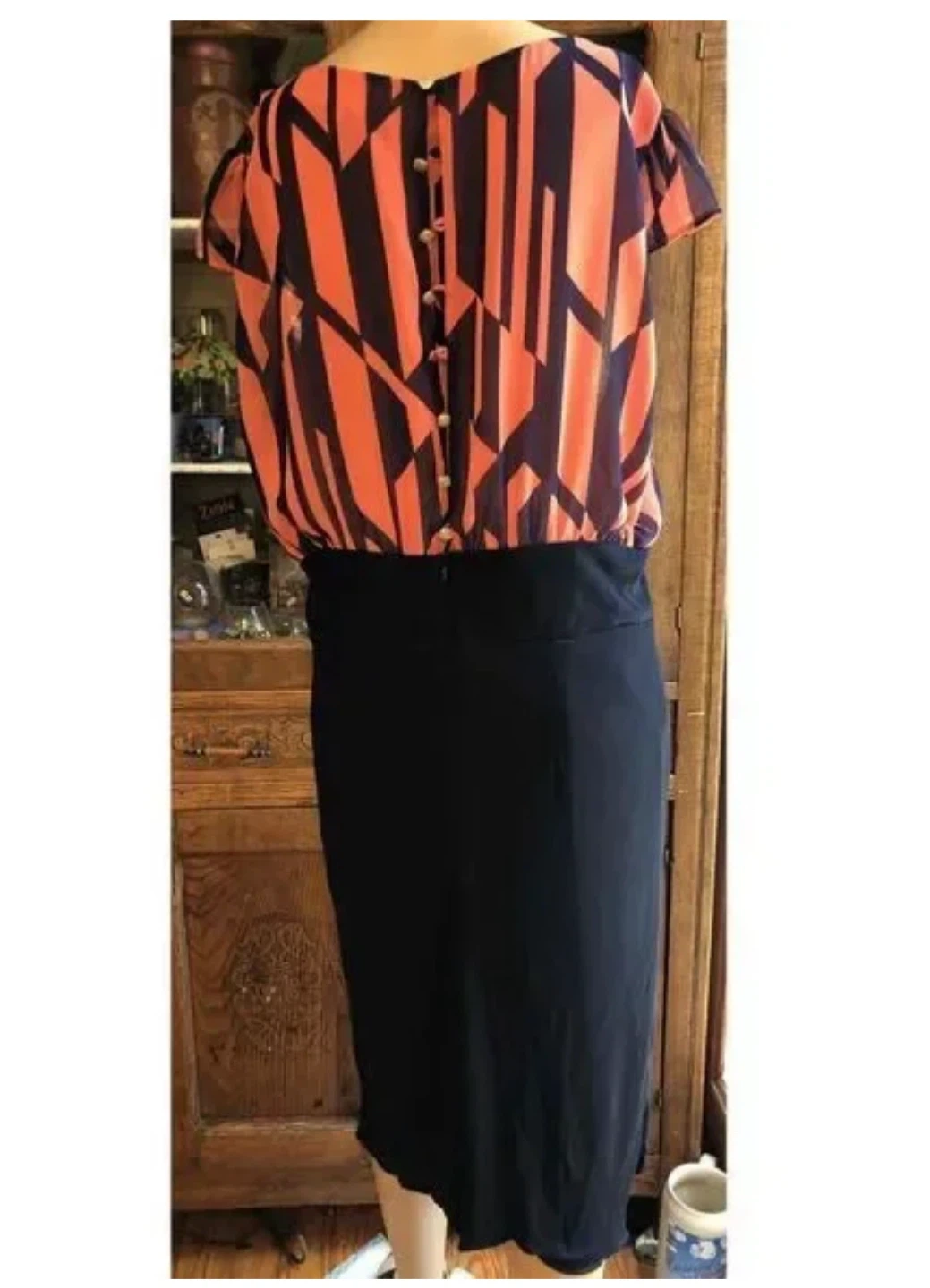 MNG by Mango Coral and Navy Geometric Print Dress - XS