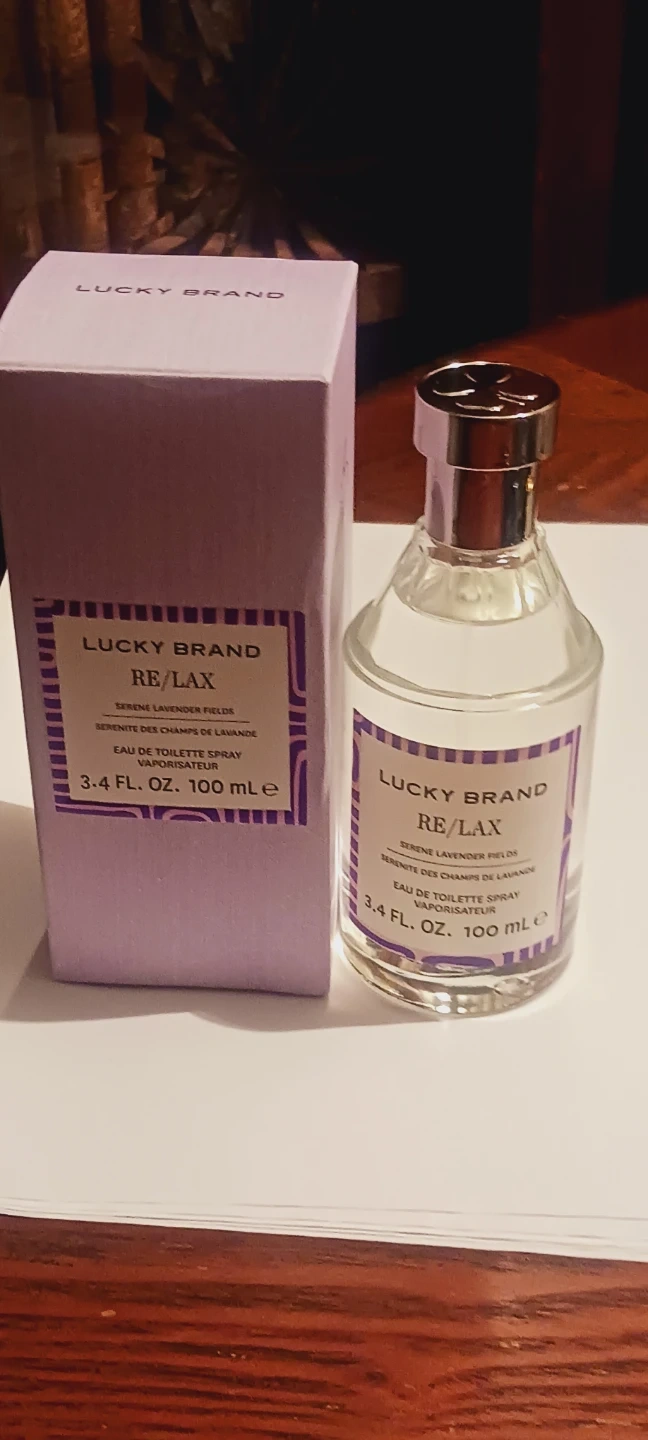 New !! NIB !! This is a Lucky Brand Re/Lax Eau de Toilette Spray in the Serene Lavender Fields scent. It's a 3.4 fl. oz. (100 mL) bottle. The fragrance is described as Serene Lavender Fields. New in original box..ALL MY PRICES ARE NEGOTIABLE !!