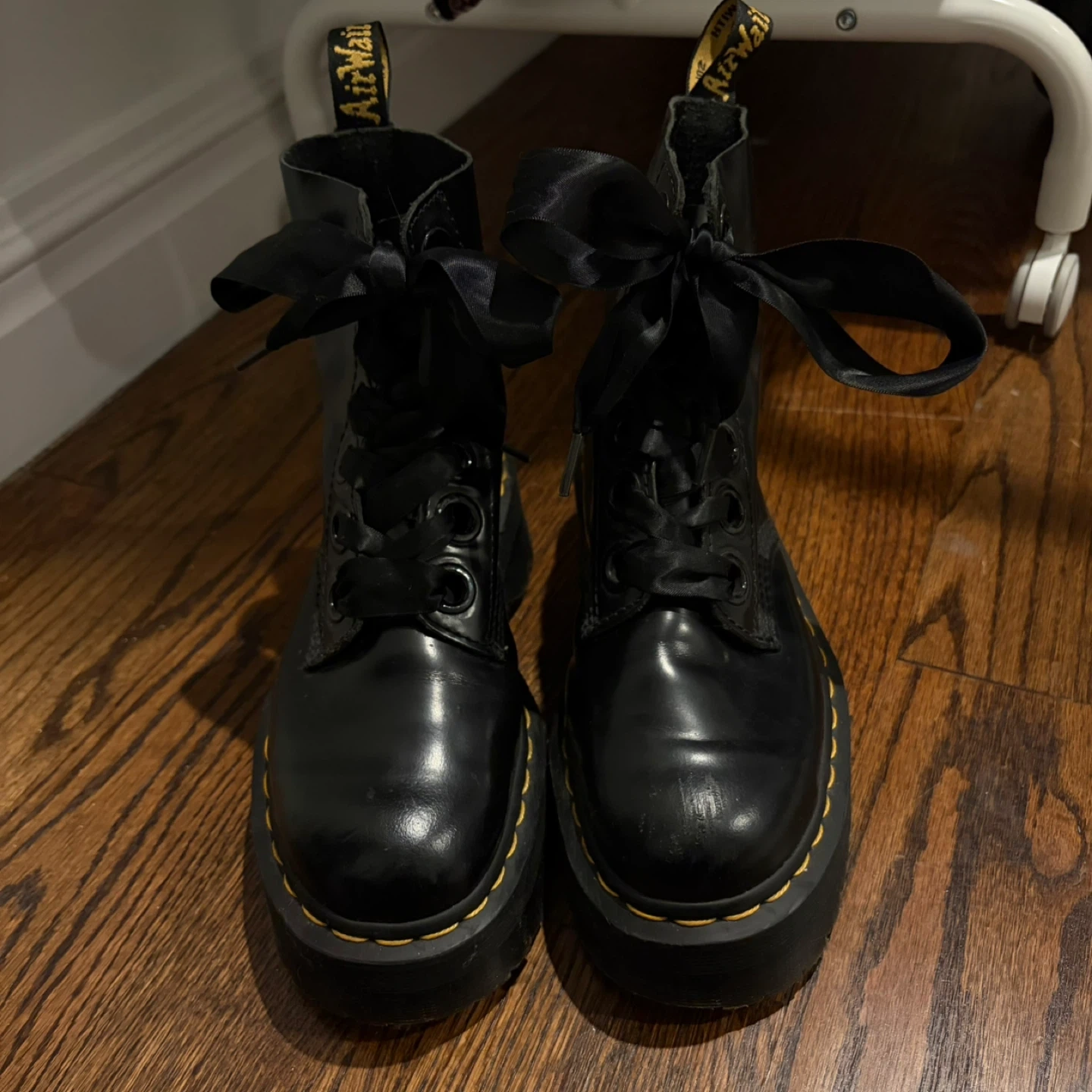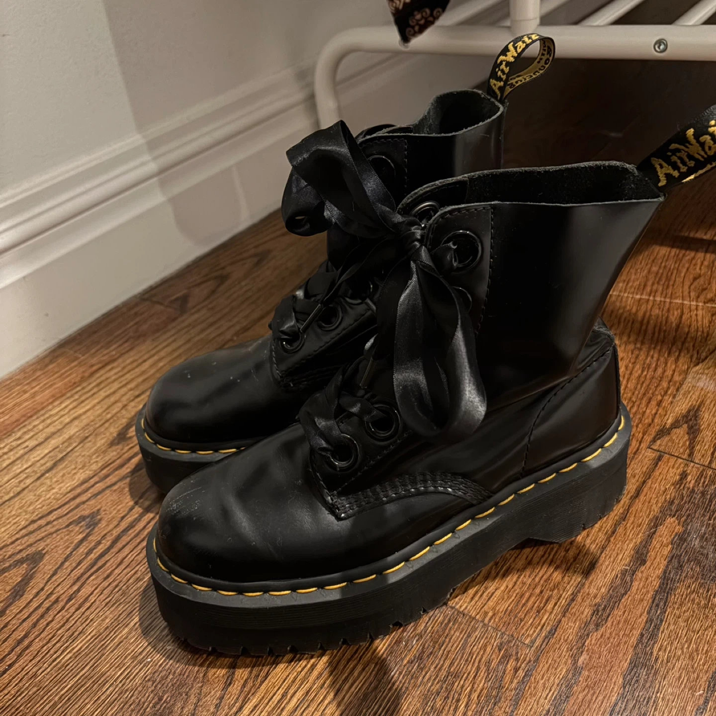 Dr. Martens Black Platform Boots with Ribbon Laces
