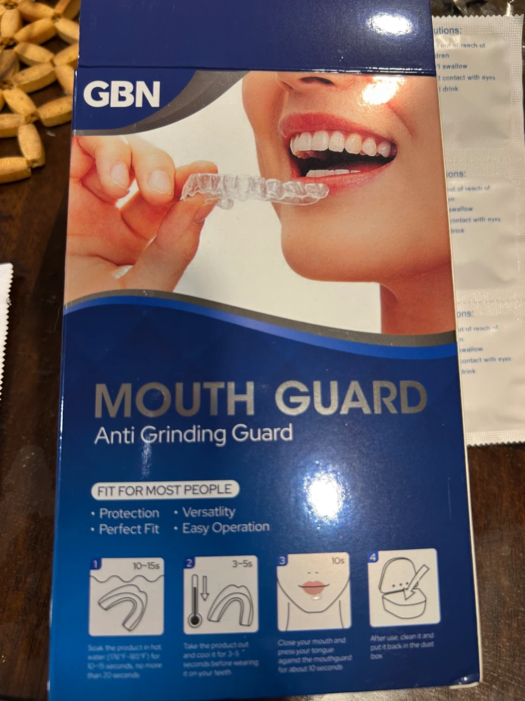 23(unboxed but didn’t use) Selling a GBN mouth guard designed to help prevent teeth grinding. It's an anti-grinding guard that's made to fit most people. It offers protection, versatility, a perfect fit, and is easy to use. Instructions are included on the box!
