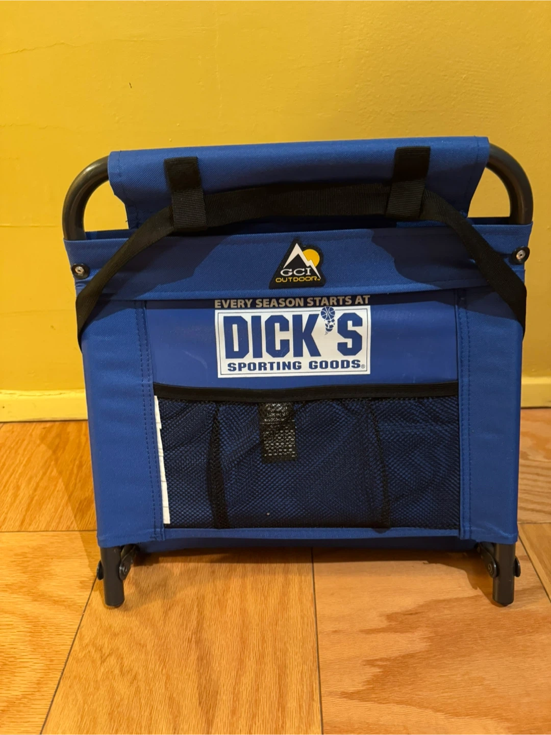 75Get comfy at the game with this GCI Outdoor BleacherBack stadium seat! It's in great condition and ready for your next event. The seat is blue and features the Dick's Sporting Goods logo.