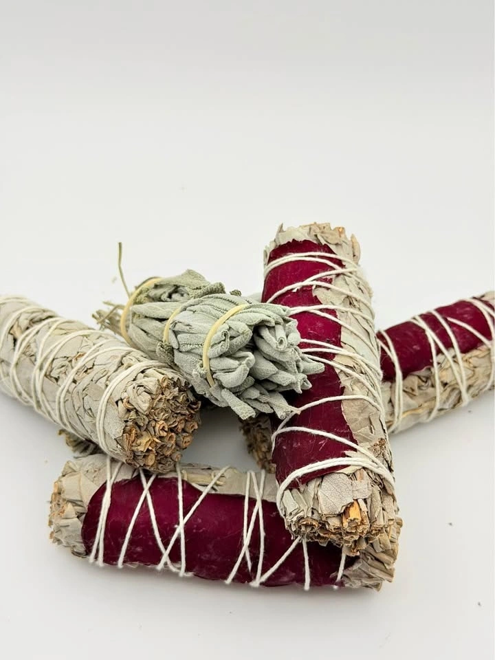 Selling a set of white sage smudge sticks (2) and white sage wrapped with red rose petals (4). Home grown and wrapped here. Great for cleansing energy, meditation, intention-setting, or simply making your space smell amazing. Everything is fresh, tightly wrapped, and unused. What’s included for $30: (2) White sage bundles, (4) White sage + red rose petal bundles. Premium Quality and Cured/Dried. Pickup: Chicago – West Loop. Perfect for home rituals, gifting, or restocking your spiritual stash.