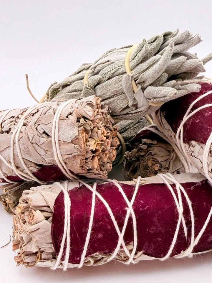 Sage Smudge (6) Bundle Set - White Sage & Rose Sage