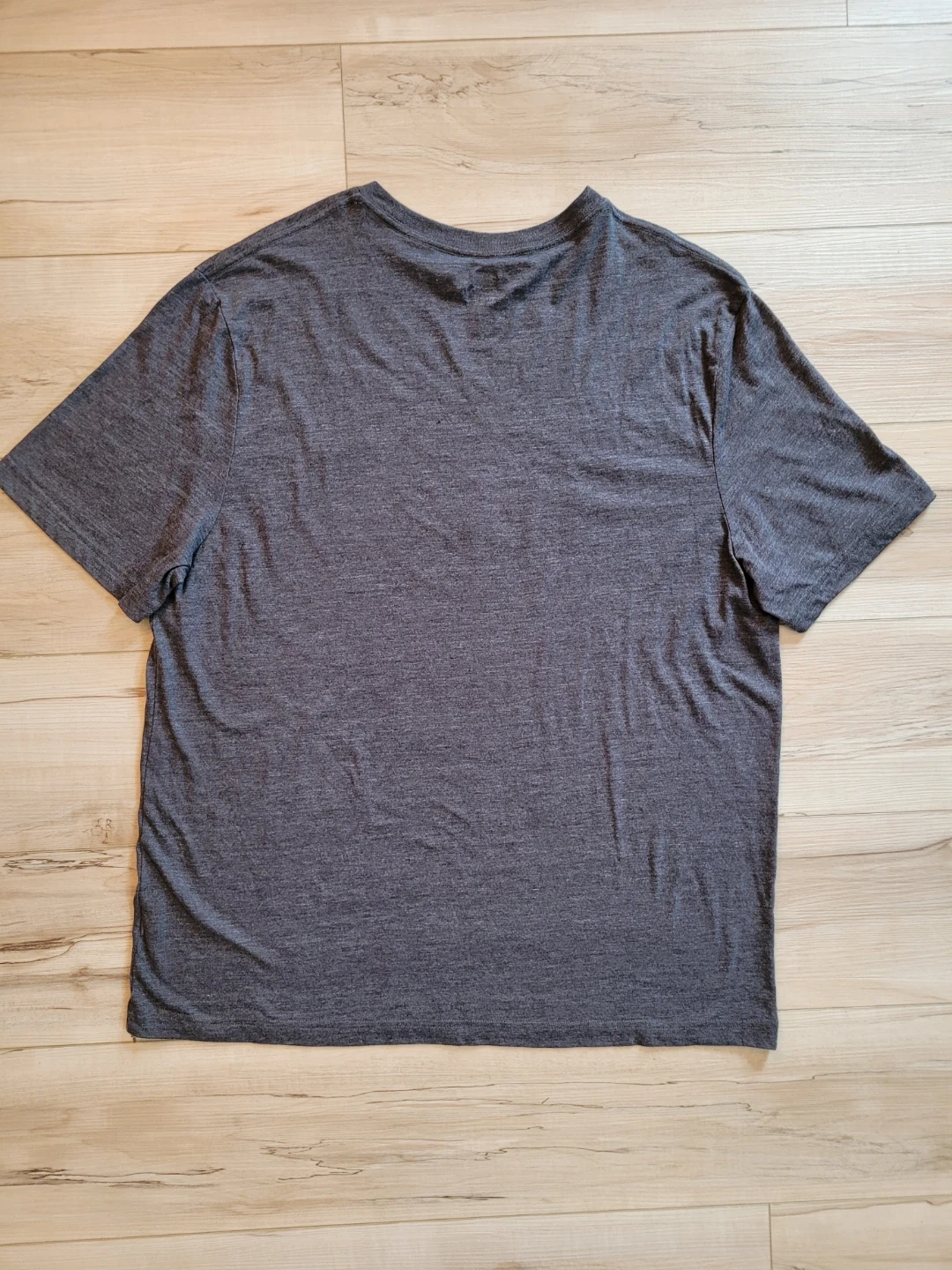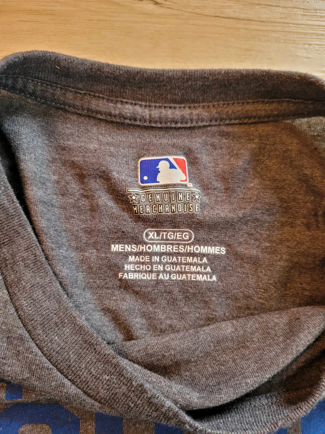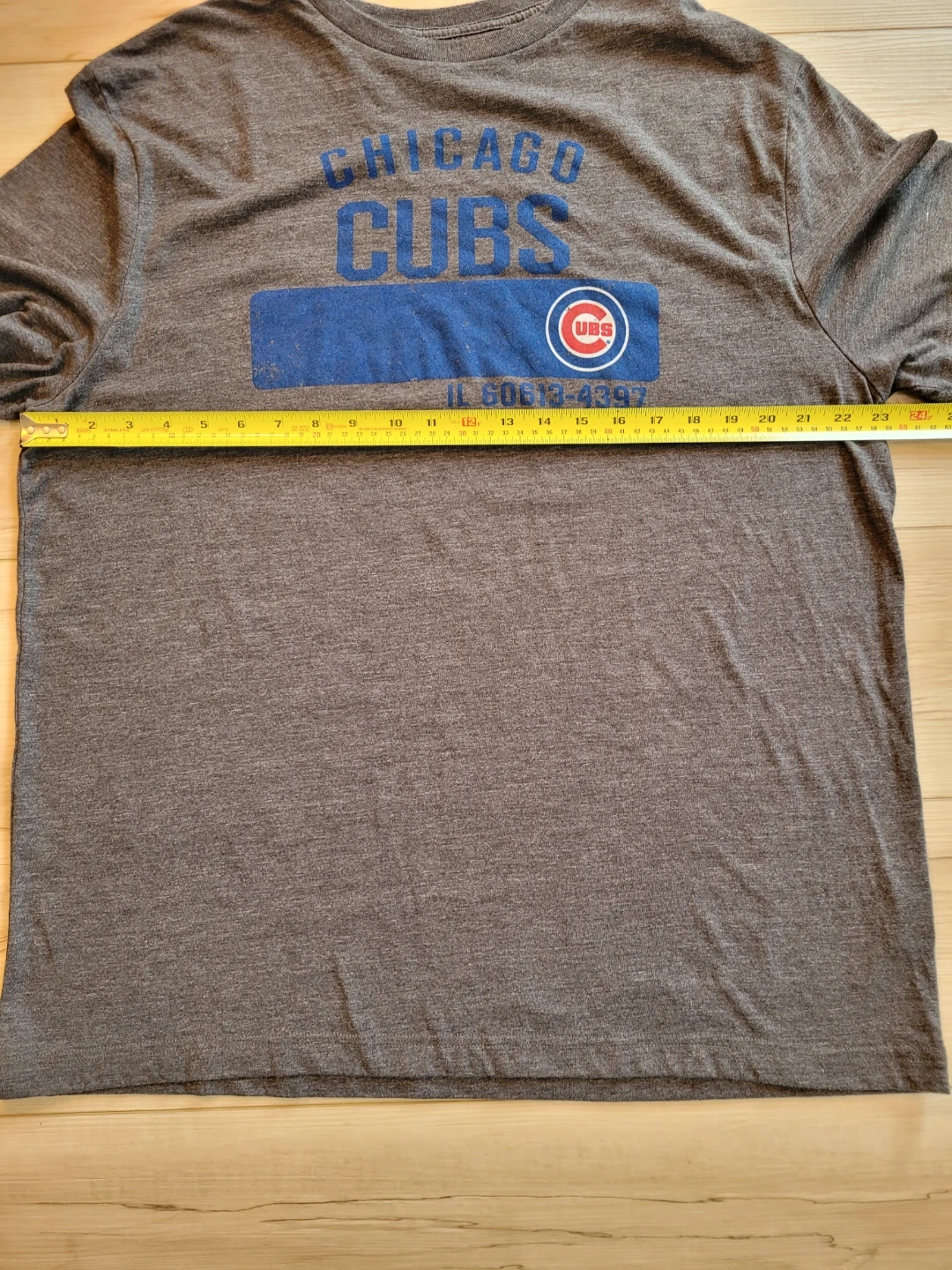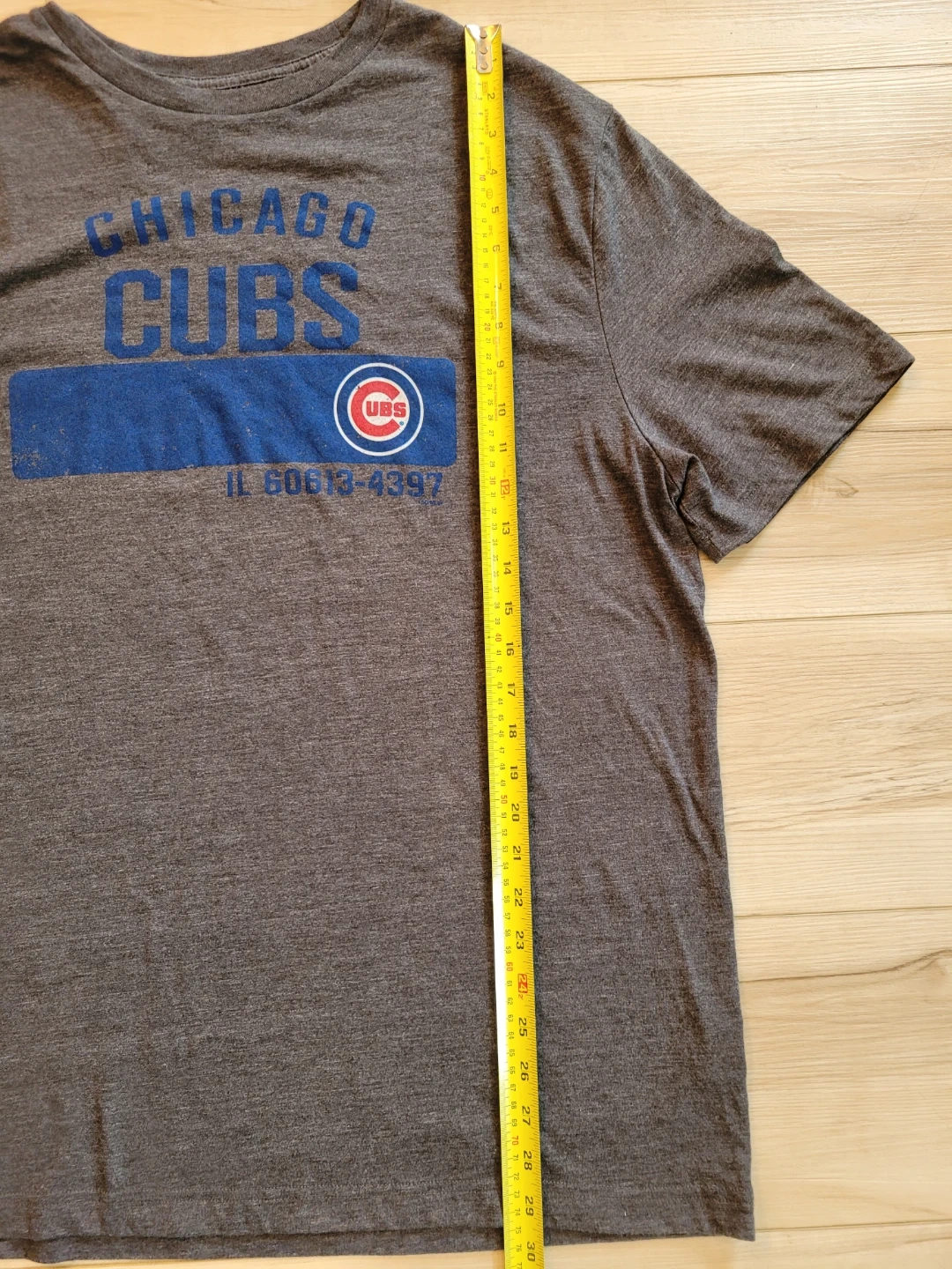 Gray Chicago Cubs t-shirt with official MLB logo with stylish worn look and zip code.