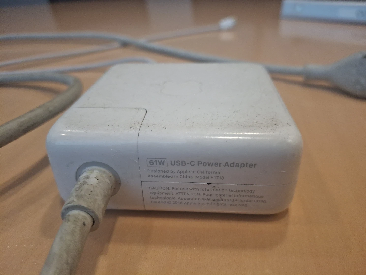 21Genuine 61W USB-C Power Charger Fr MacBook Pro 14 13 12'' 2016 Mac Book Air 2018 Used Apple MacBook charger with plug. Input: AC 100-240V-1.5A(1.5A), 50-60Hz; Output: 20.3V=3A, 9V=3A, 5.2V=2.4A. Comes with the 6.6ft (2m) USB C to C cable Compatible with USB-C Laptops: MacBook Pro 13-inch 2020 (M1) (A2251/ A2289/ A2338...) MacBook Pro 13-inch 2019, 2018, 2017, 2016 (A1706/ A1708/ A1989/ A2159...) MacBook 12-inch 2017, 2016, 2015 (A1534/ A1540/ A1646...) MacBook Pro 16-inch 2021, 2019(A2166...) MacBook Pro 15-inch 2021, 2018, 2017, 2016 (A1706/ A1707/ A1708/ A1719...) MacBook Air 13-inch 2020(New), 2019, 2018A and any other type c port laptops. Compatible with USB-C Tablets: iPad Air 4th Generation iPad Pro 11 Gen 1/2/3 2018/2020/2021 iPad Pro 12.9-inch 2020, 2018 (A1876/ A1895/ A1983/ A2014/ A2069/ A2229/ A2232/ A2233) iPad Air 4th Generation10.9-inch (A2072/ A2316/ A2324/ 2325...) Seller Notes “works fine, fast charging” Compatible Brand For Apple Brand Apple Type Power Adapter Manufacturer Warranty 1 Year Color White Output Current 20.3V=3A, 9V=3A, 5.2V=2.4A Voltage 20.3V=3A, 9V=3A, 5.2V=2.4A, 3 V, 15 V MPN A1706, A1708, A1707, A1534 Works with 61W 30W 29W USB C to USB C Power Charger Compatible Product Line For Apple MacBook Air, For Apple MacBook Pro UPC 724190489017 Category breadcrumb Electronics Computers/Tablets & Networking Laptop & Desktop Accessories Laptop Power Adapters/Char