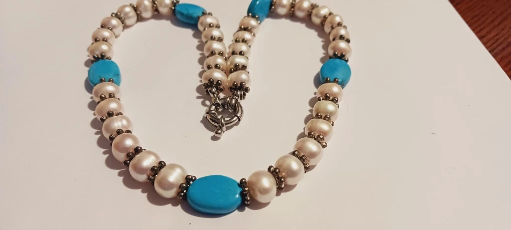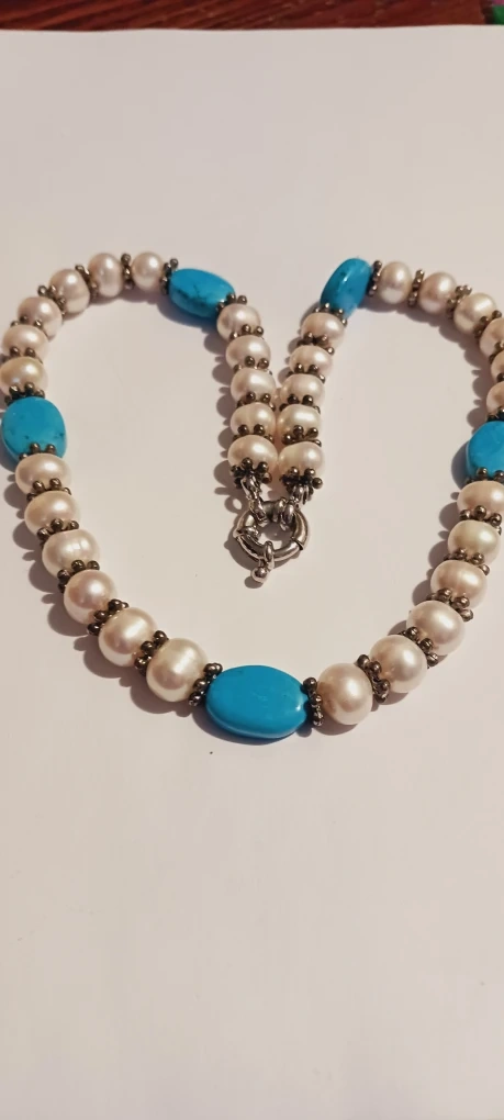 1000+Beautiful necklace featuring genuine freshwater pearls and turquoise stones. It's in great condition and ready to add a touch of elegance to your outfit!! 16" long. Excellent condition. ALL MY PRICES ARE NEGOTIABLE !!