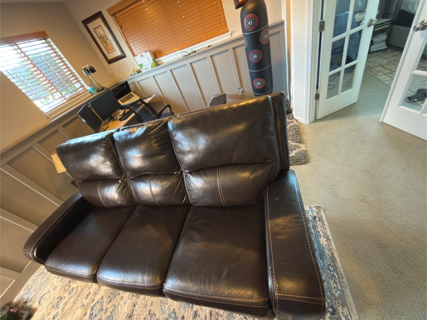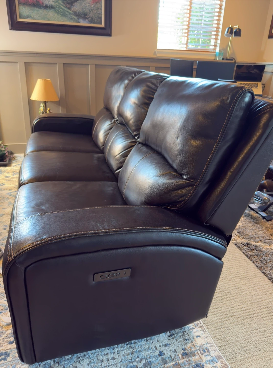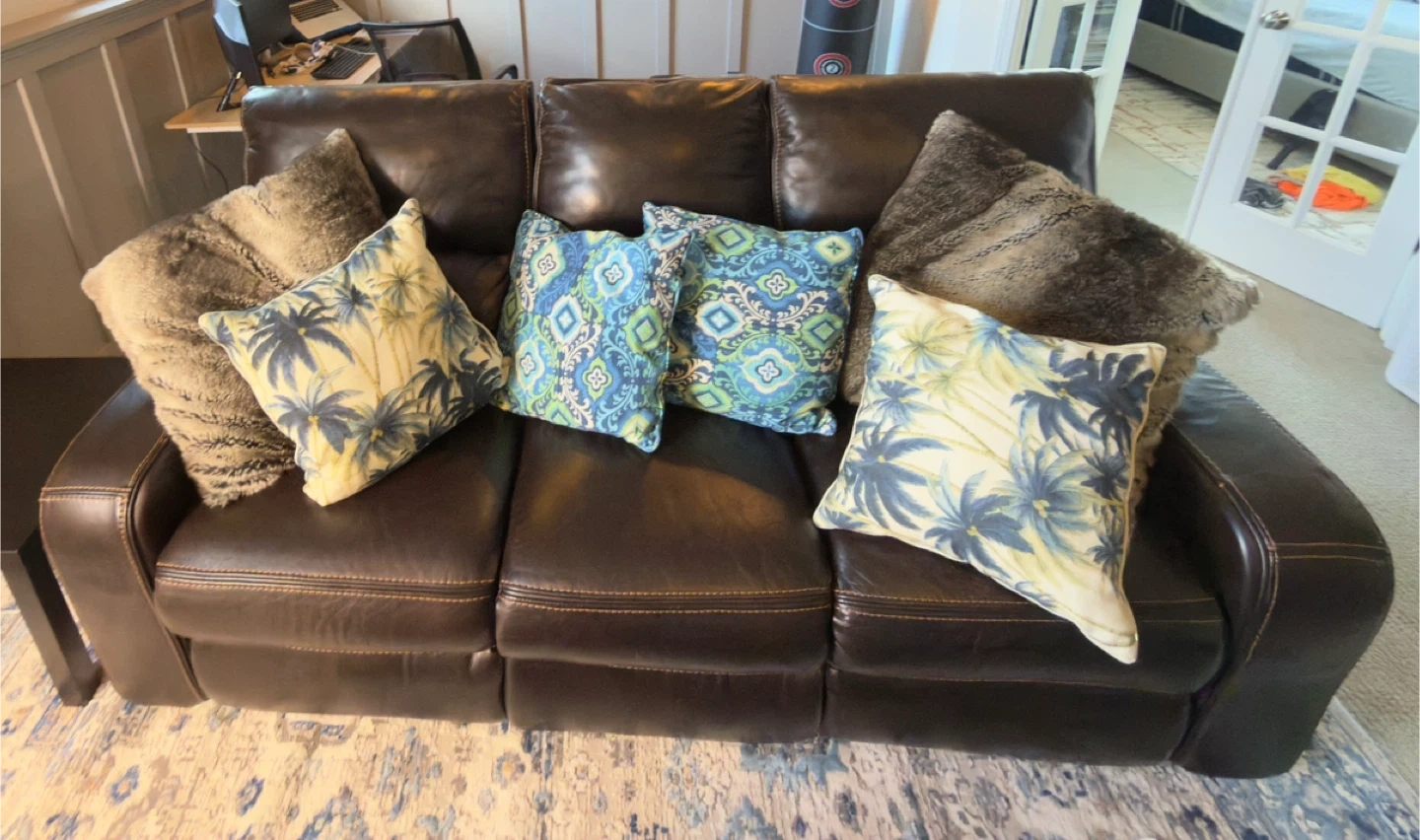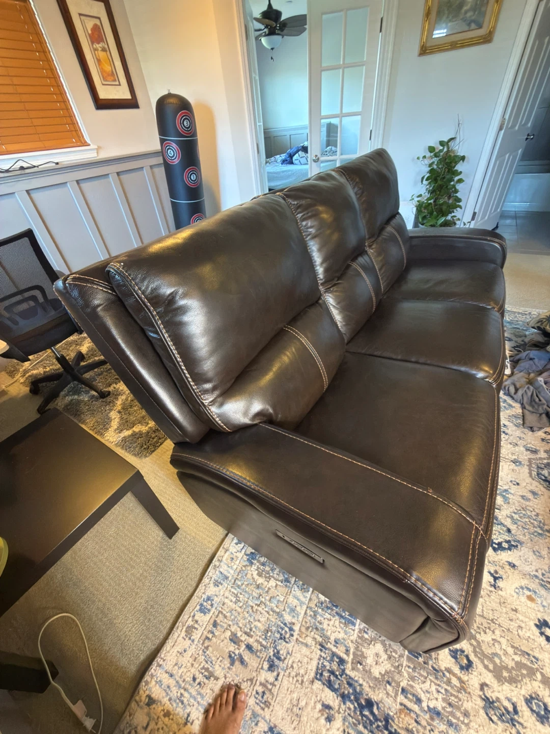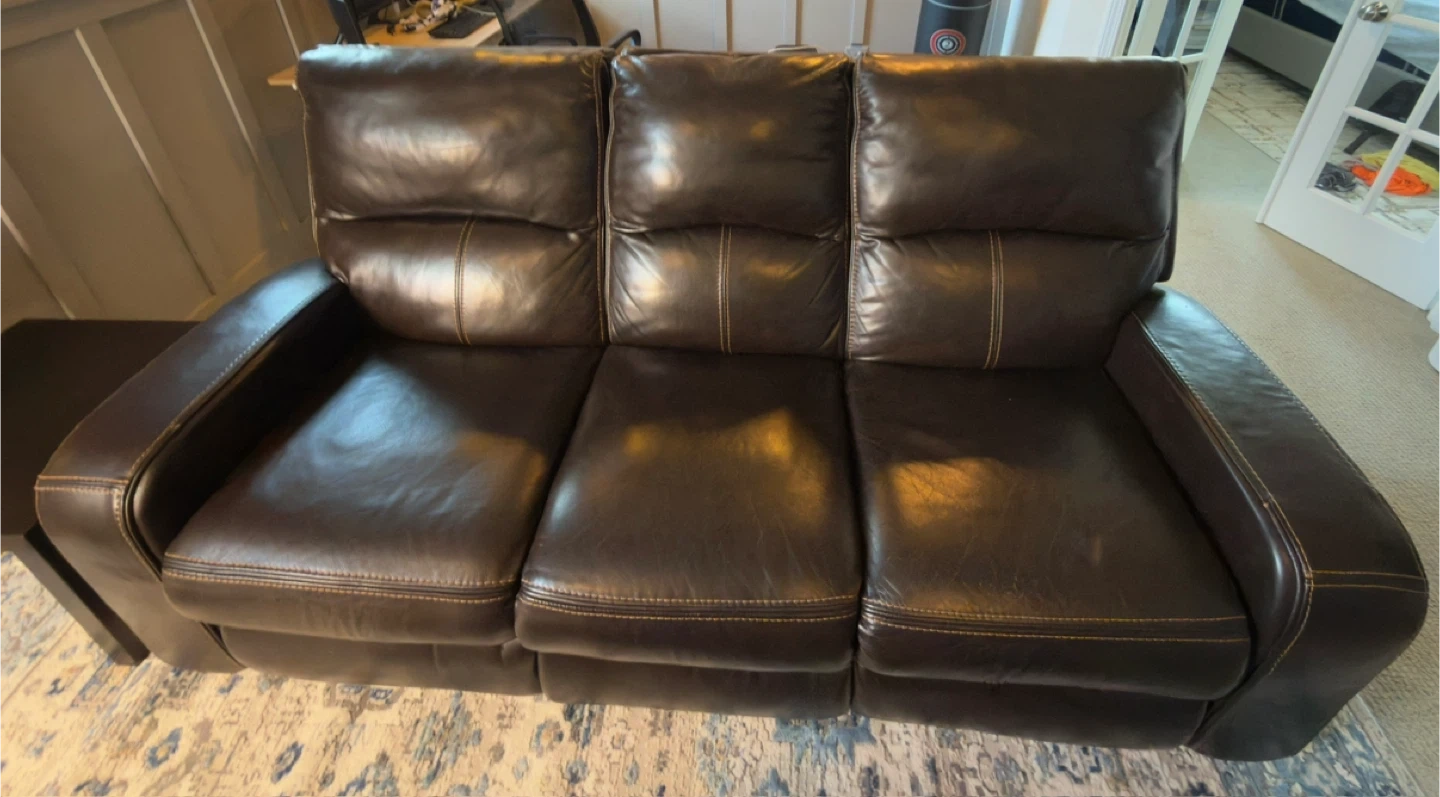 0Bought from Costco a few years ago and kept in great shape. The leather is soft, clean, and well maintained — no tears, scratches, or sagging. Both ends recline smoothly and the seats are still firm and comfortable. It’s a high-quality, heavy, and durable piece — perfect for relaxing or movie nights. Smoke-free, pet-free home. Originally paid around $. 900 Asking: $ 450(open to reasonable offers). We’re only selling because of a move. If you’re looking for a genuine leather recliner sofa that looks and feels almost new, this one’s a great deal.