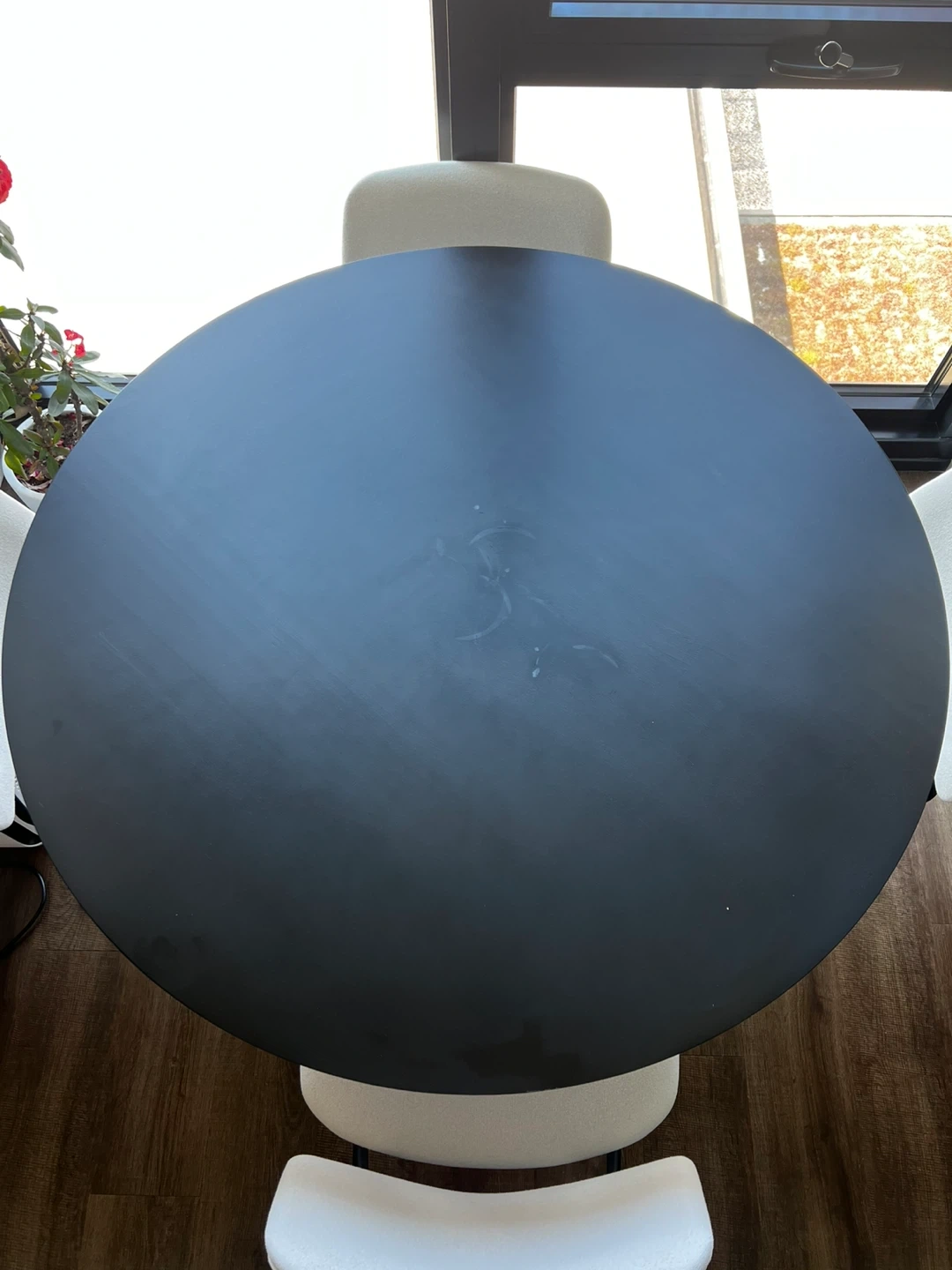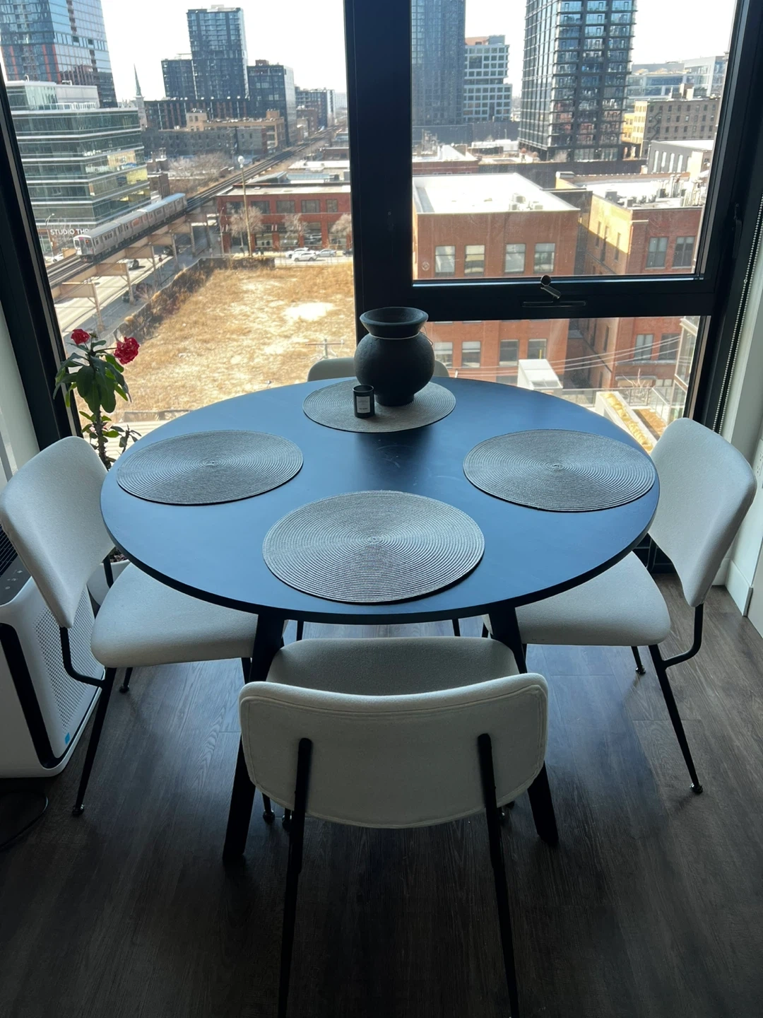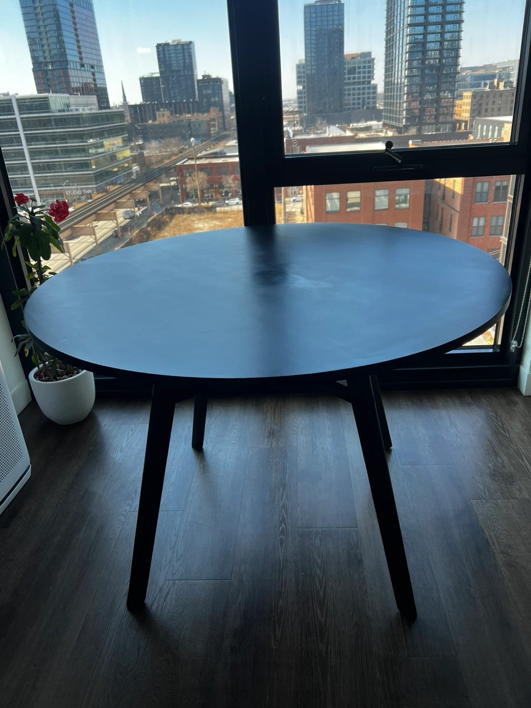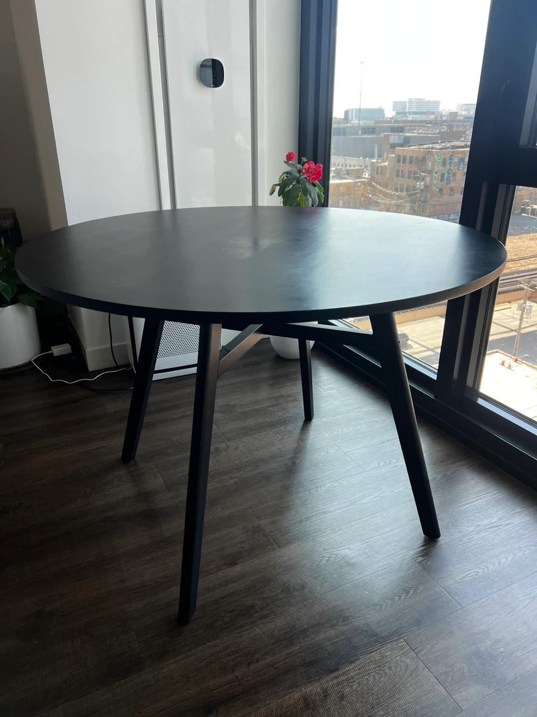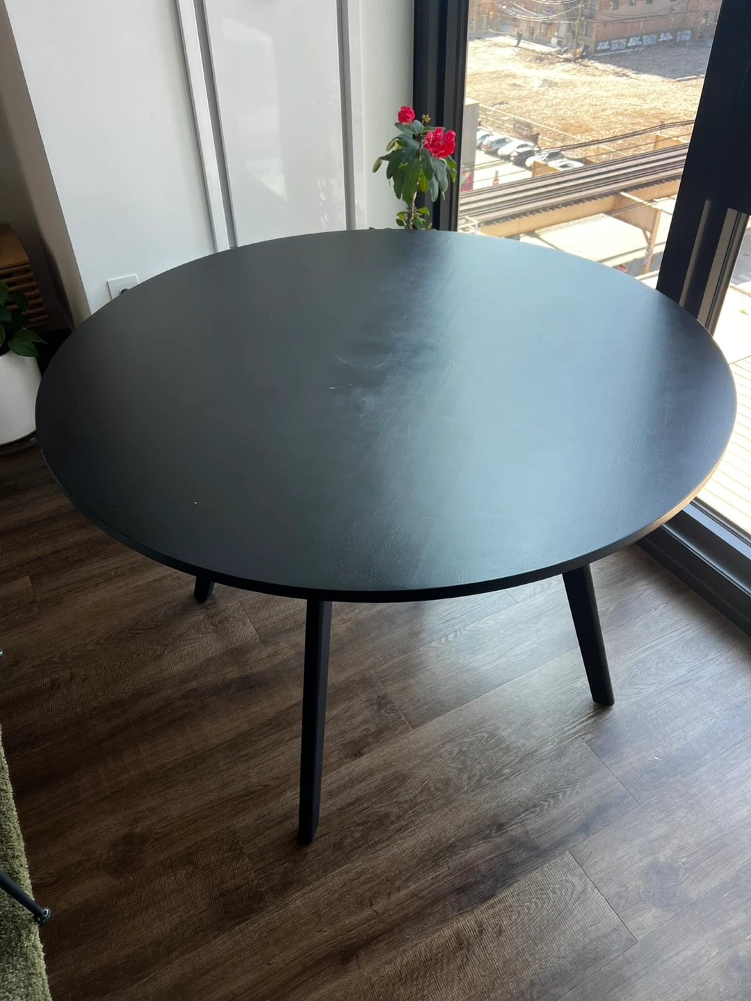 Beautiful 44” round solid wood dining table in a sleek black finish. The clean, modern design makes it perfect for apartments, condos, or smaller dining spaces while still comfortably seating 4 people.