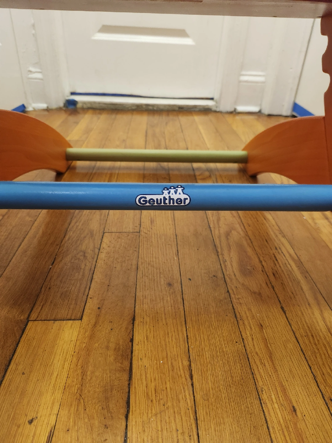 Selling a colorful high chair from Geuther! It's in good condition and ready for a new home. This chair is perfect for little ones learning to sit and eat at the table. The bright colors make it a fun addition to any room. Happy to disassemble!