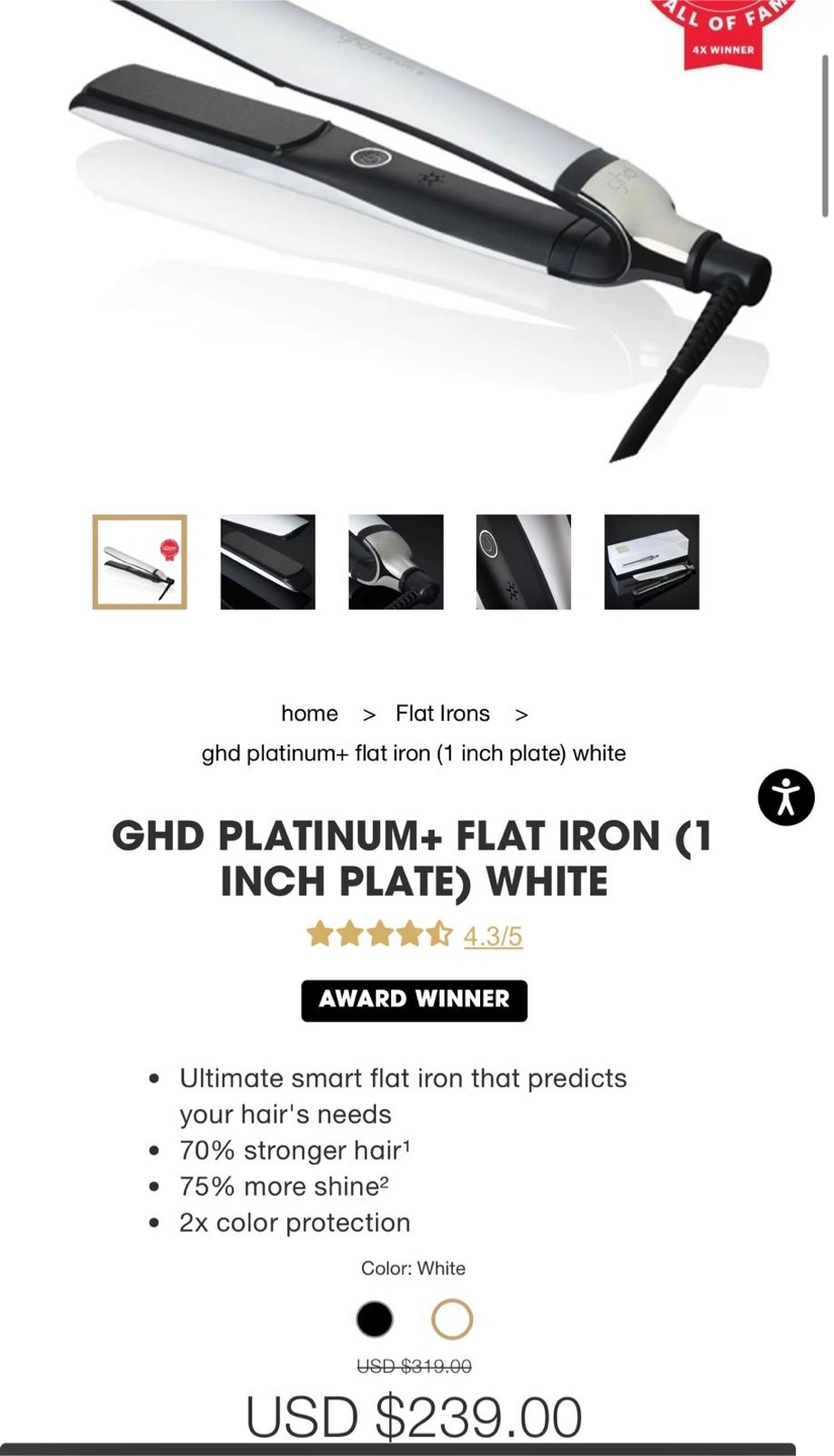 96Selling a GHD Platinum+ Flat Iron with a 1-inch plate in white. It's an ultimate smart flat iron that predicts your hair's needs! It can make your hair 70% stronger and give 75% more shine, with 2x color protection. Originally bought for $239