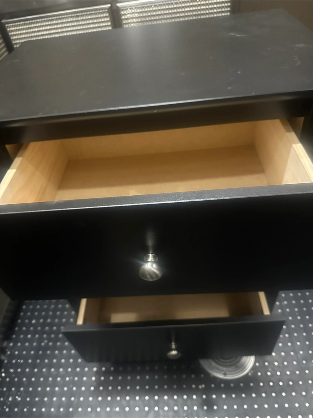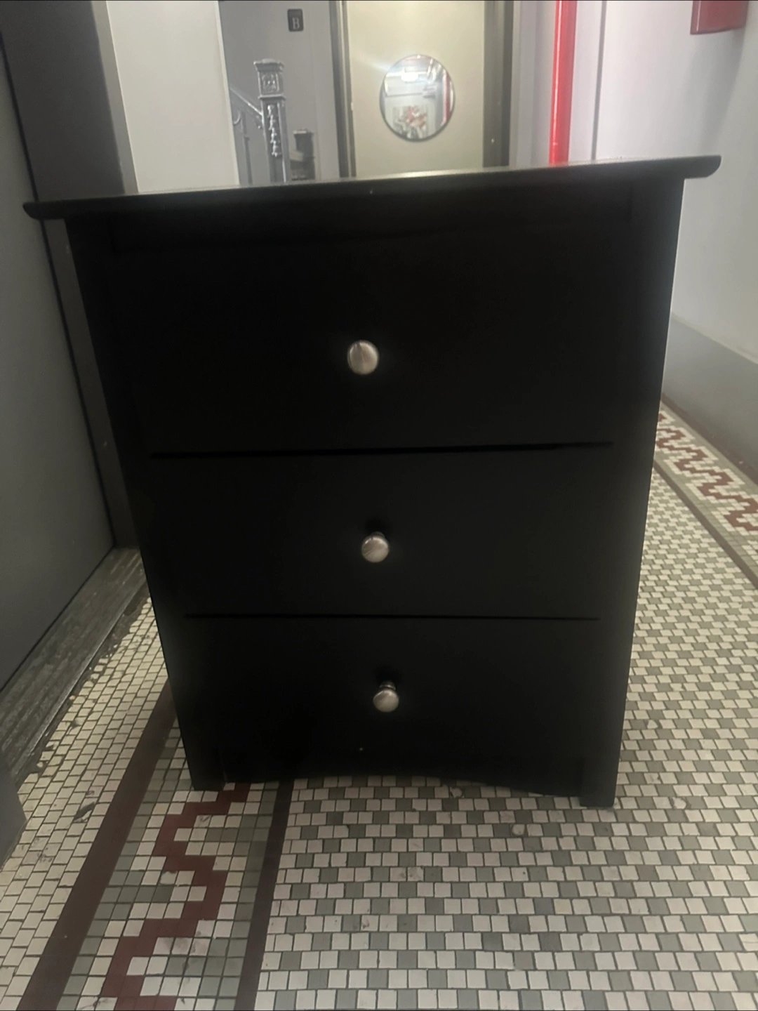 I'm selling a black 3-drawer dresser. It's in good condition and ready for a new home! Has a few nicks but nothing that can’t be fixed. The drawers slide smoothly, and it offers plenty of storage space