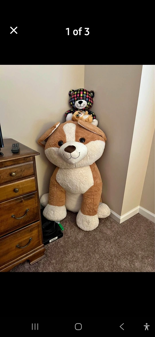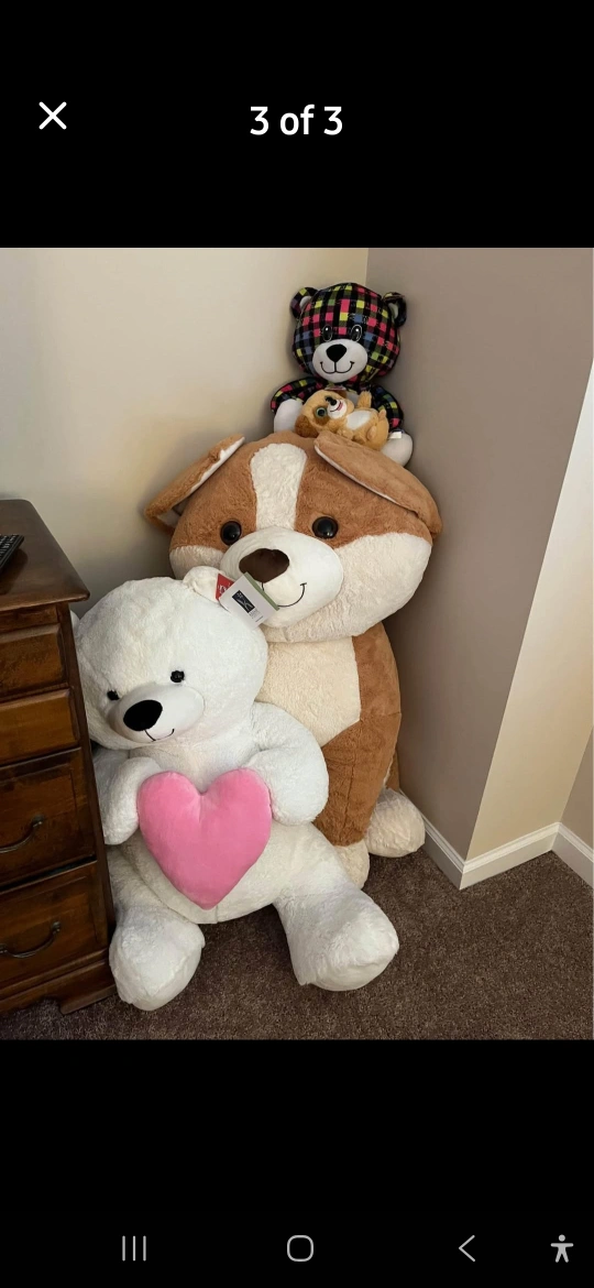 Selling a super cute and cuddly giant teddy bear! It's white with a sweet pink heart. Perfect for a gift or just to add some cozy vibes to your space