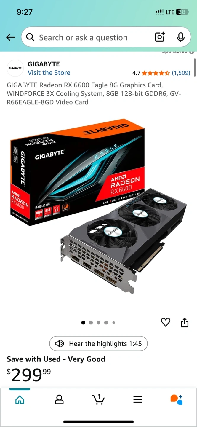 10Selling a GIGABYTE Radeon RX 6600 Eagle 8G Graphics Card with WINDFORCE 3X Cooling System! It features 8GB 128-bit GDDR6. Originally listed for $299.99