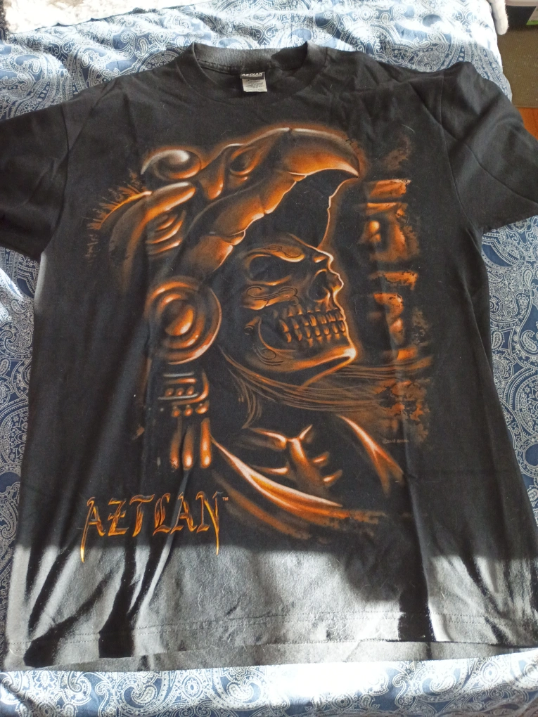 Selling a Gildan t-shirt with a cool Aztlan graphic. It's black and in good condition, ready for a new home!