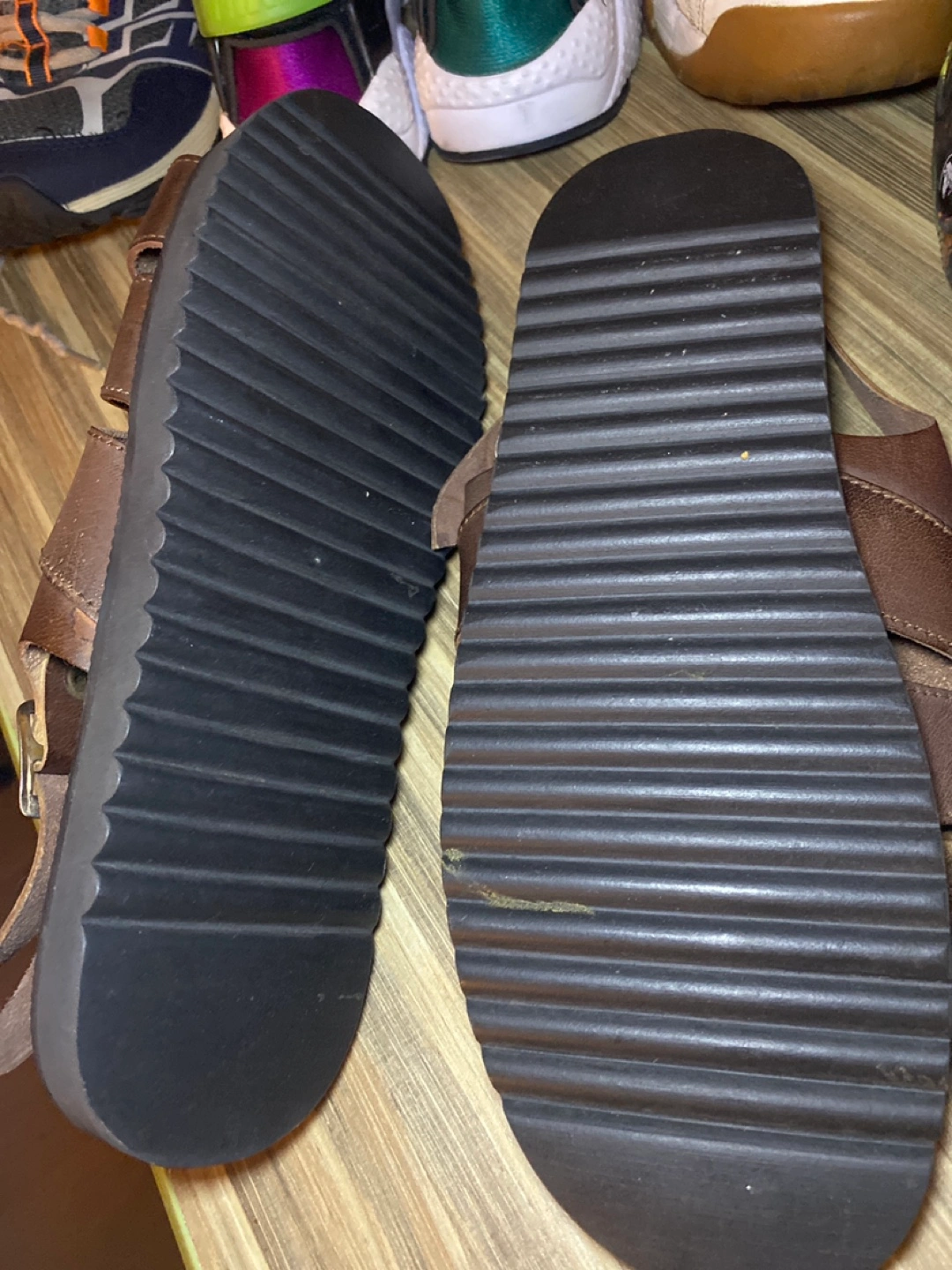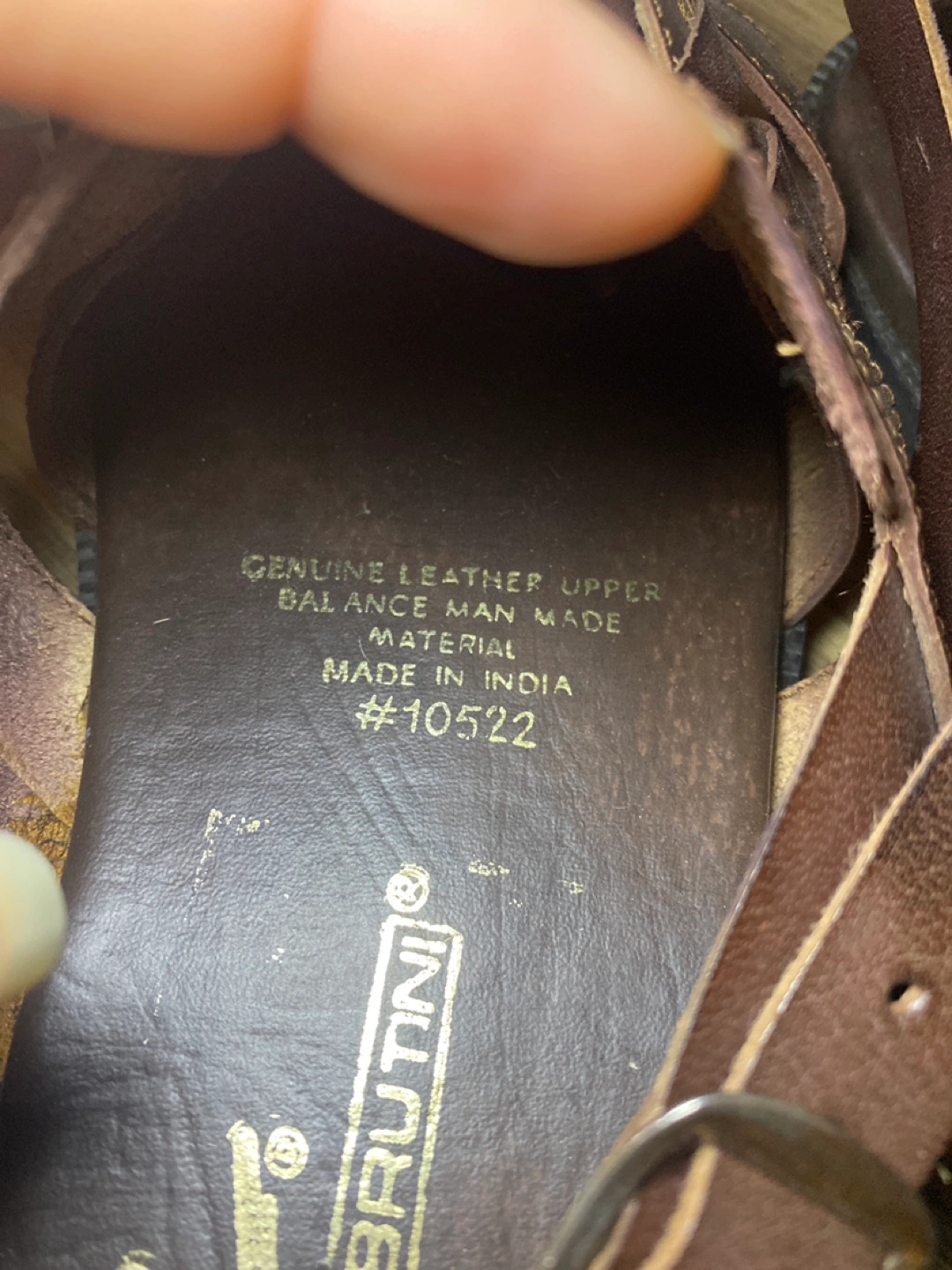 Selling a pair of Giorgio Brutini brown leather sandals in size 9.5. These sandals feature a genuine leather upper and a unique woven design. They are made in India. Perfect for a casual and stylish look!