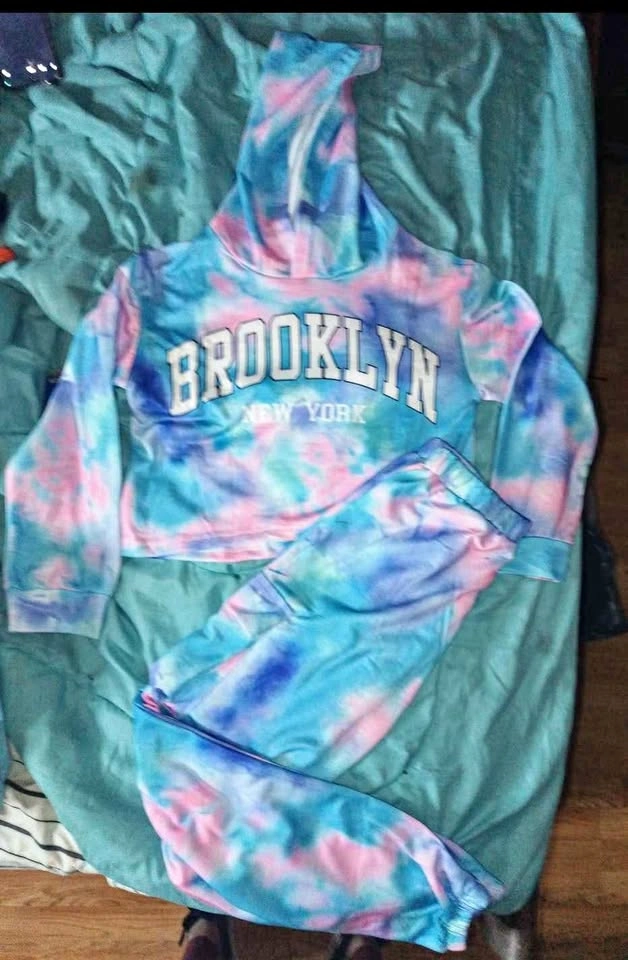 15Brand new never worn girls size 11-12 top and bottom included. 2 piece matching outfits. Hoodies clothes made of quality 95% polyester and 5% spandex. Super soft, cozy and breathable to wear. Girls two piece outfits featured neon/tie-dye/feather patterns, unique vibrant and trendy; Stylish “Brooklyn New York” print sweatshirts with a little cropped design; Jogger baggy pants with side cargo pockets to hold essentials. Must-have girls fashion in wardrobe.