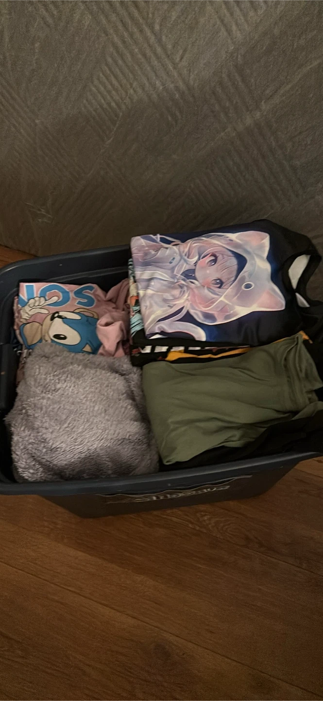 I'm selling a clothing bundle with a variety of items. There are shirts, sweaters, and a jacket. All items are in good condition and ready for a new home!