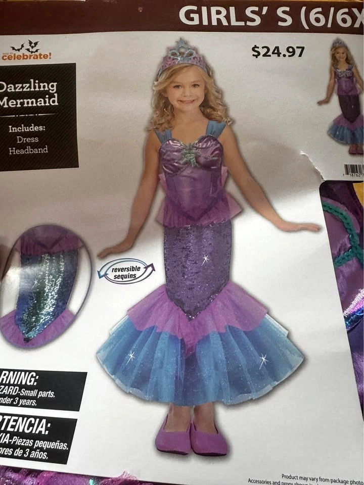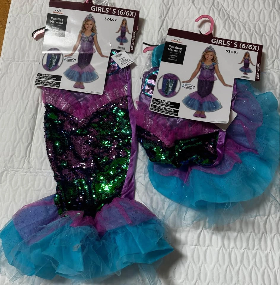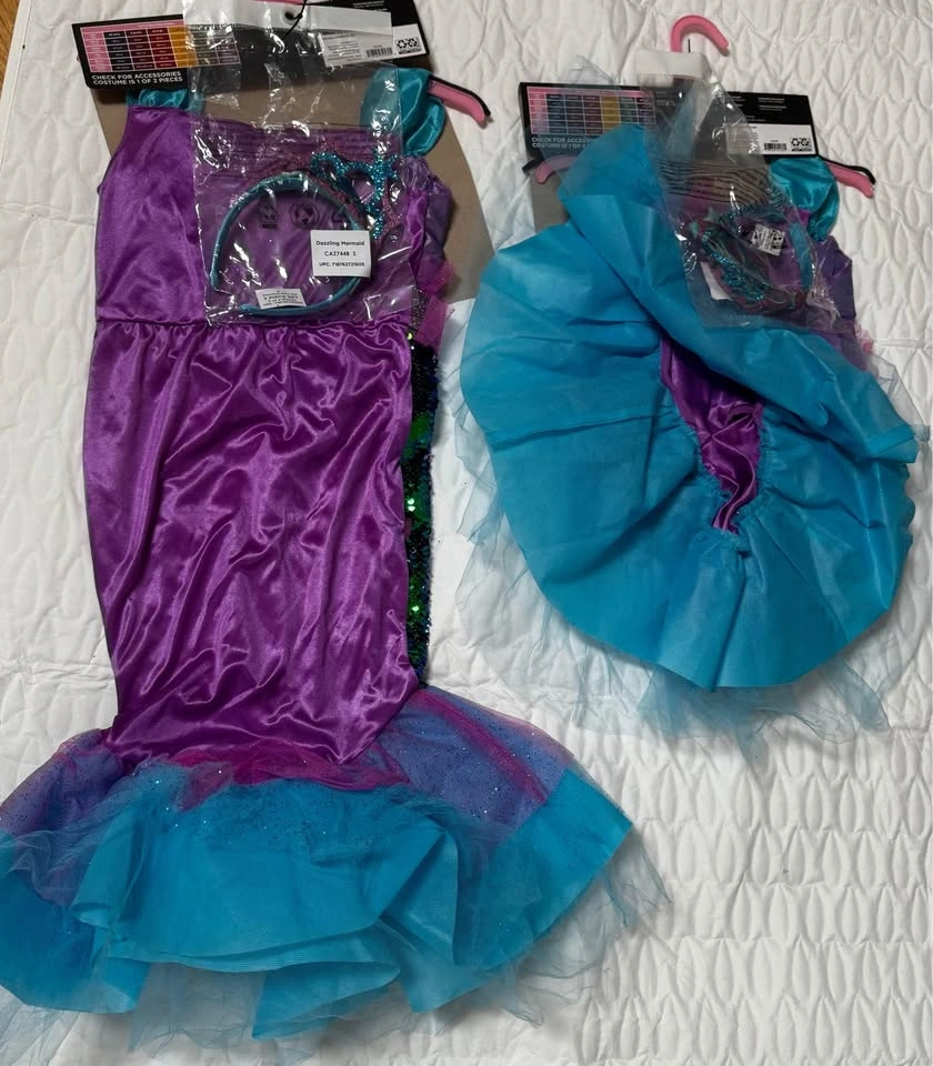 2 Girls Dazzling Mermaid Costume. Includes Dress & Headband. 1 for $20 OR BOTH FOR $30