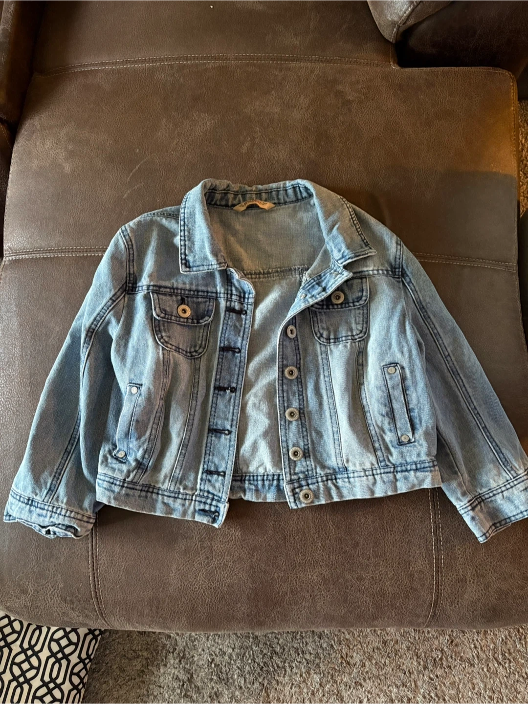 Here's a cute denim jacket for girls! It's a size large and in great condition. Perfect for layering or adding a bit of style to any outfit