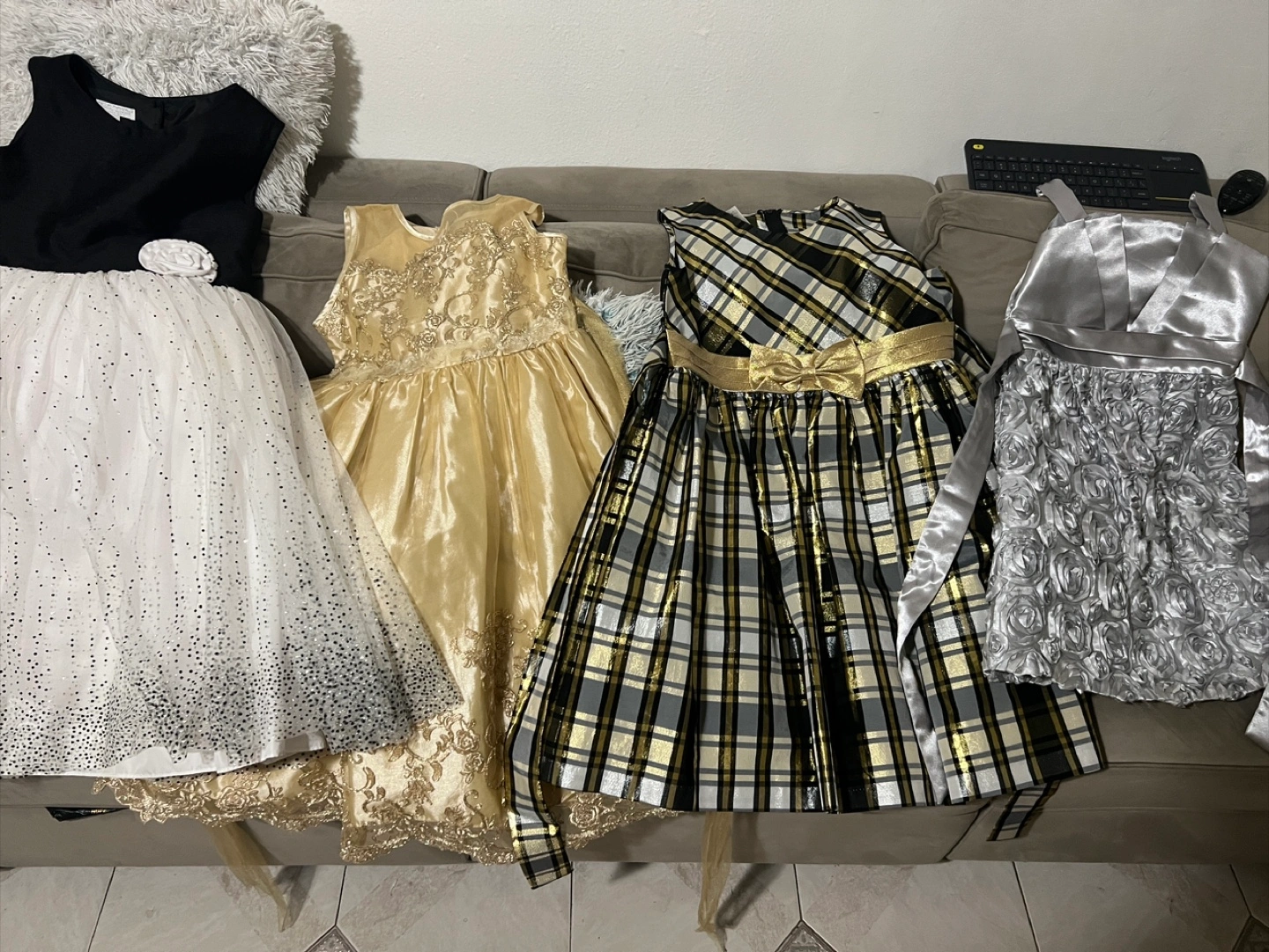 20$25 or best offer buy 1 or all Twelve your little one will Love it They original retails for $50 and more new I have a collection of girls' dresses in various styles and sizes. They are perfect for parties, special occasions, or just dressing up! There are different colors and designs available. Please take a look at the pictures and let me know if you're interested in any of them! gold black 14 Silver 11 Red 12 Gold 10 White 8 Dress with rises and butter flies 16 Black and white bottom 12 Pale rose 11-12 White top and pink bottom 14 Pink 16 Light pink 14 White with flower in the bottom. 10 has a small rip