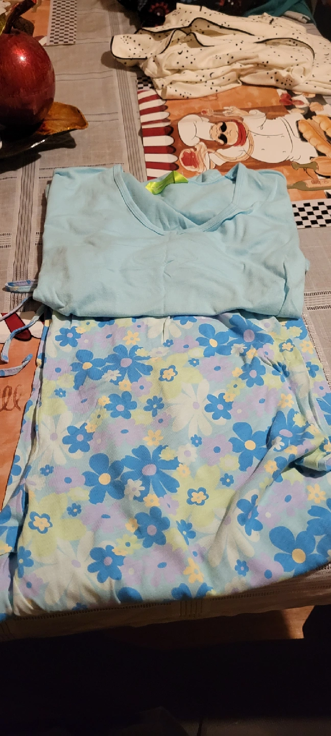 Cute girls' pajama set featuring a light blue top and floral print bottoms. Perfect for a comfy night's sleep! never worn its a medium size