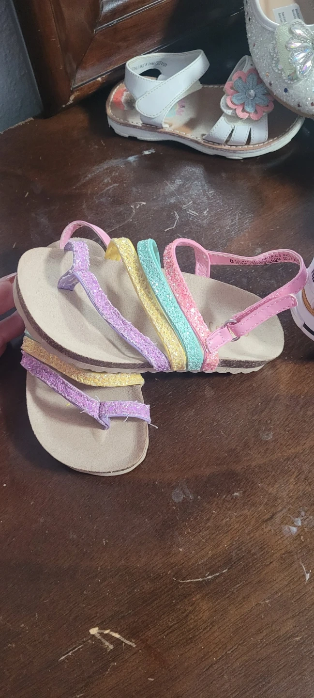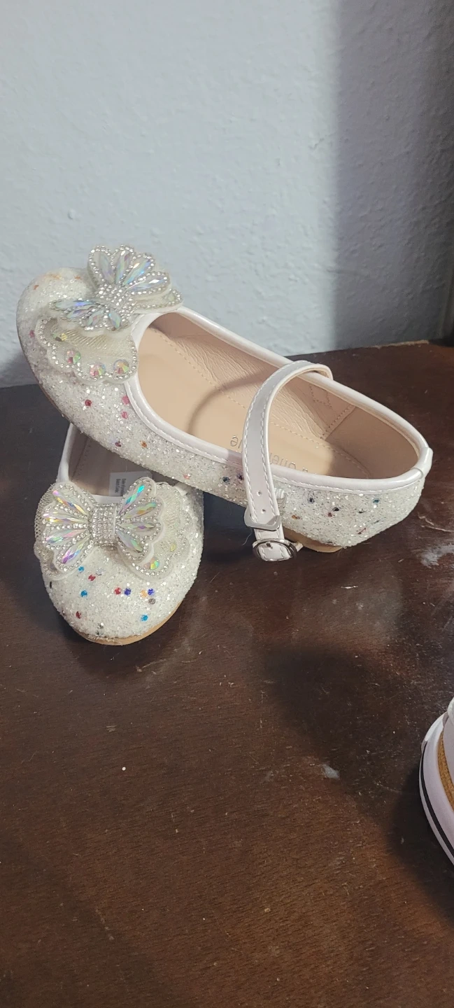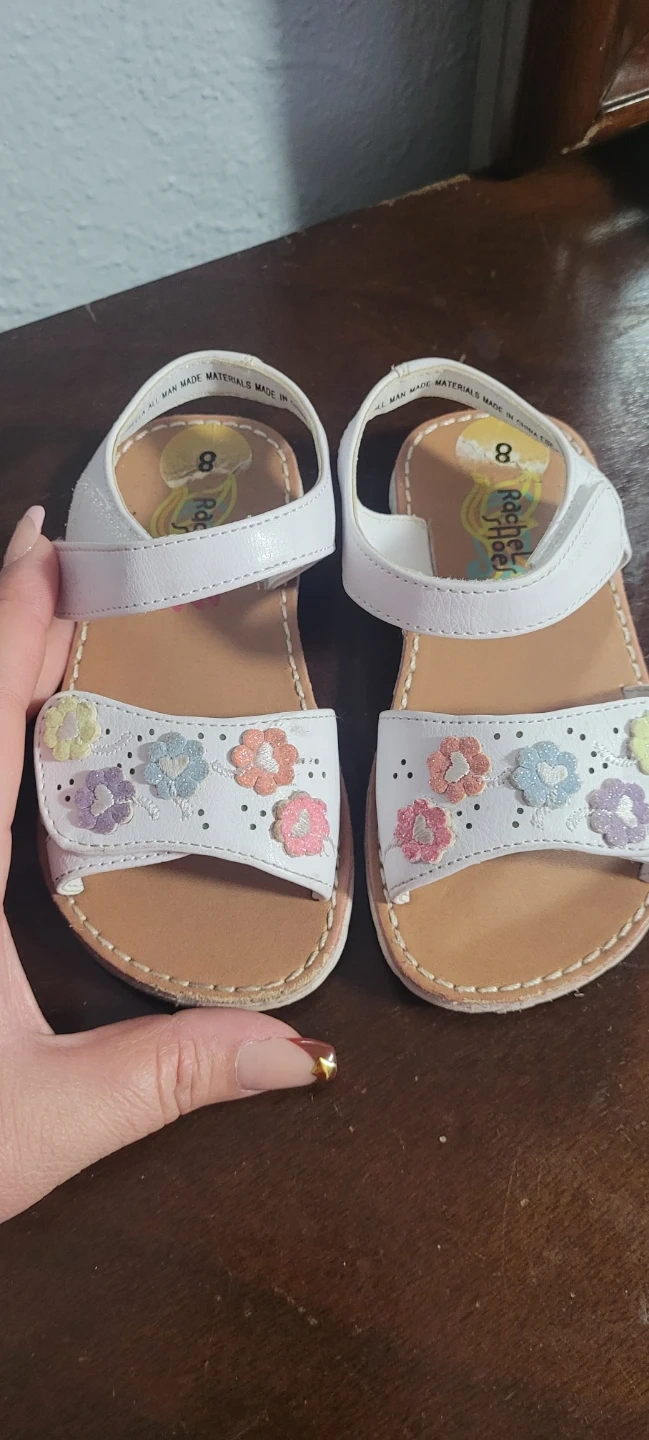 10Selling a bundle of girls' shoes, all size 8! Included are Rachel Riley white flower sandals and a pair of white glittery flats. These are perfect for your little one to wear during the spring and summer season!