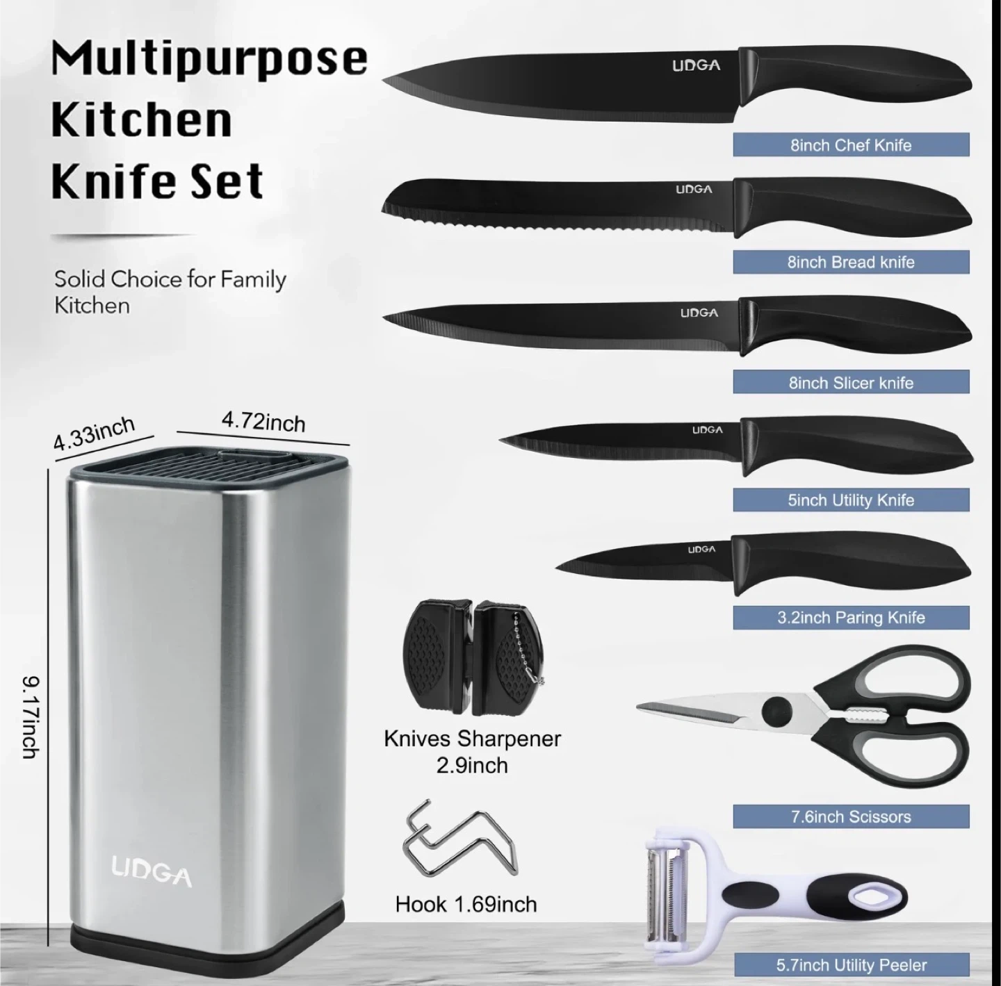 Multipurpose Kitchen Knife Set with Block
