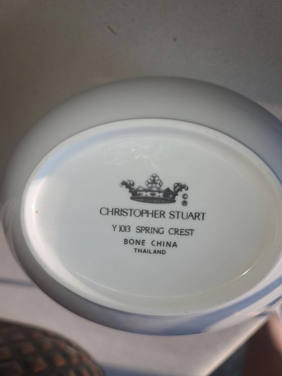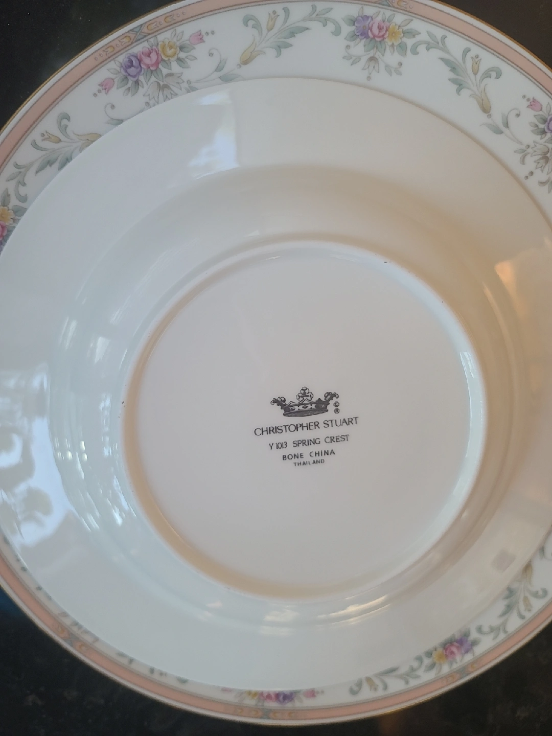 Selling serving dinnerware set for 6. Year of 1989. Spring of Christopher Stuart Y1013, Spring Crest Bone China dinnerware. It's in great condition and comes with the original boxes. The set is beautifully decorated with a delicate floral pattern and a gold trim. Perfect for adding a touch of elegance to your dining experience.