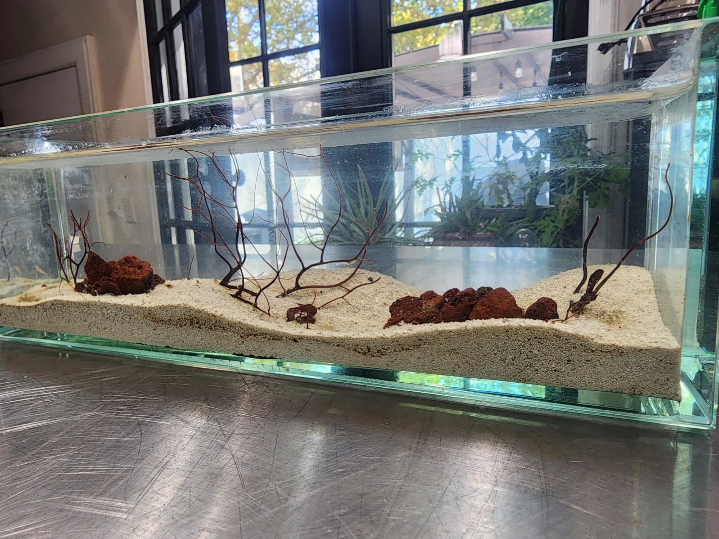 10Selling a glass aquarium that's perfect for adding a touch of zen to your space! It comes with sand and lava rock, creating a unique and calming aesthetic. It's in great condition and ready to be the centerpiece of your home or office