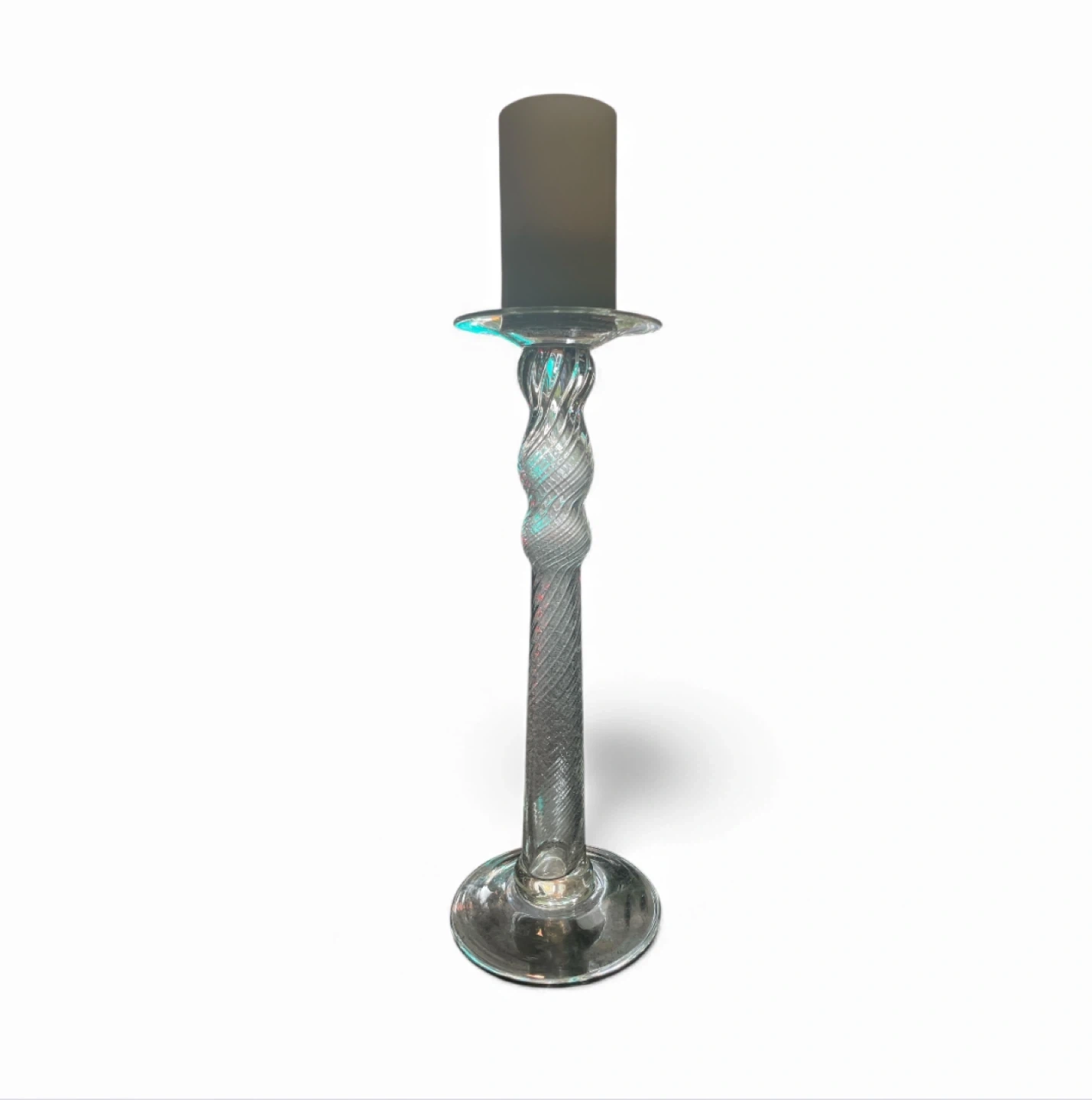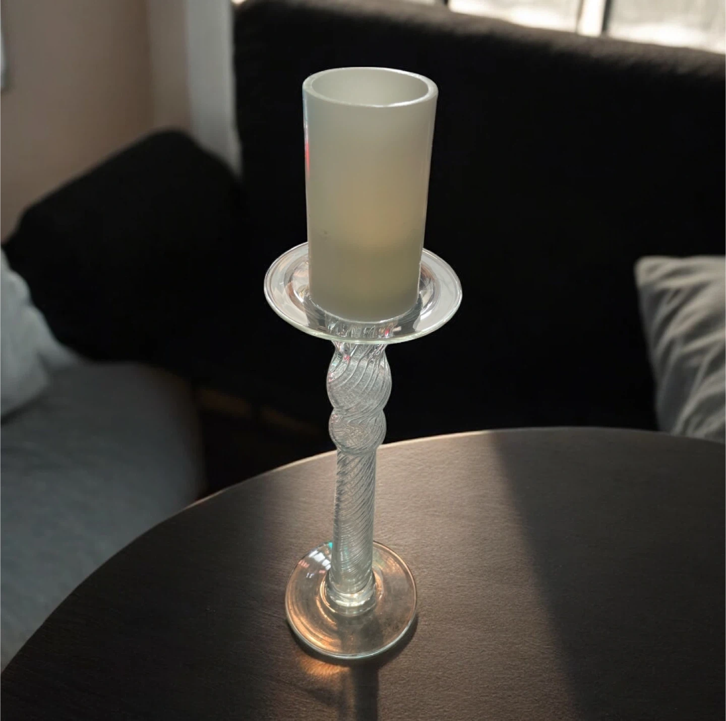 23Selling a glass candle holder. It is clear and in good condition. Would look great in any room. No cracks and or chips. Candle not included.
