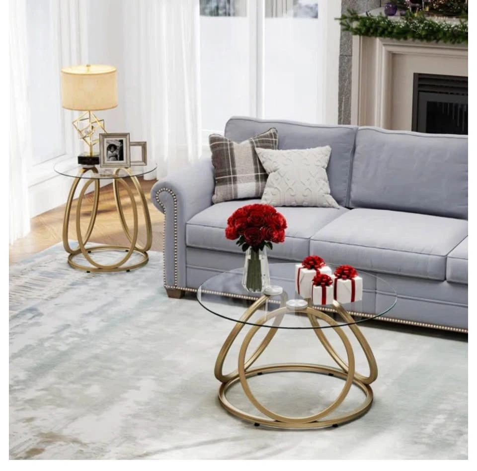 Round Side Table - Black & Gold Accent