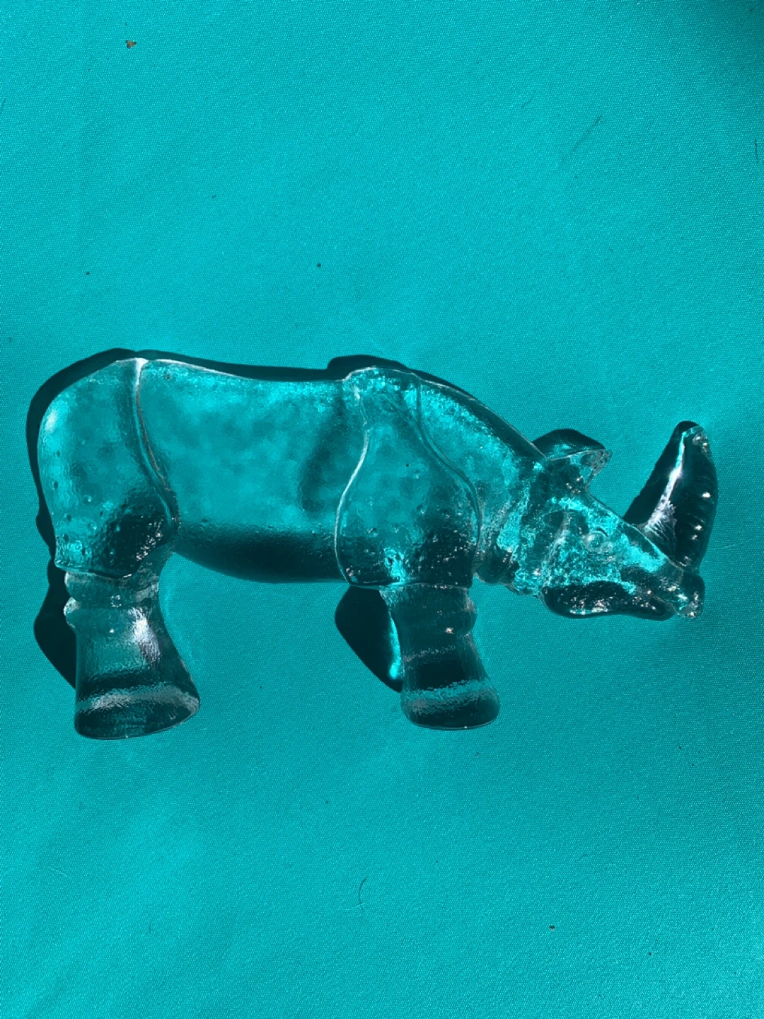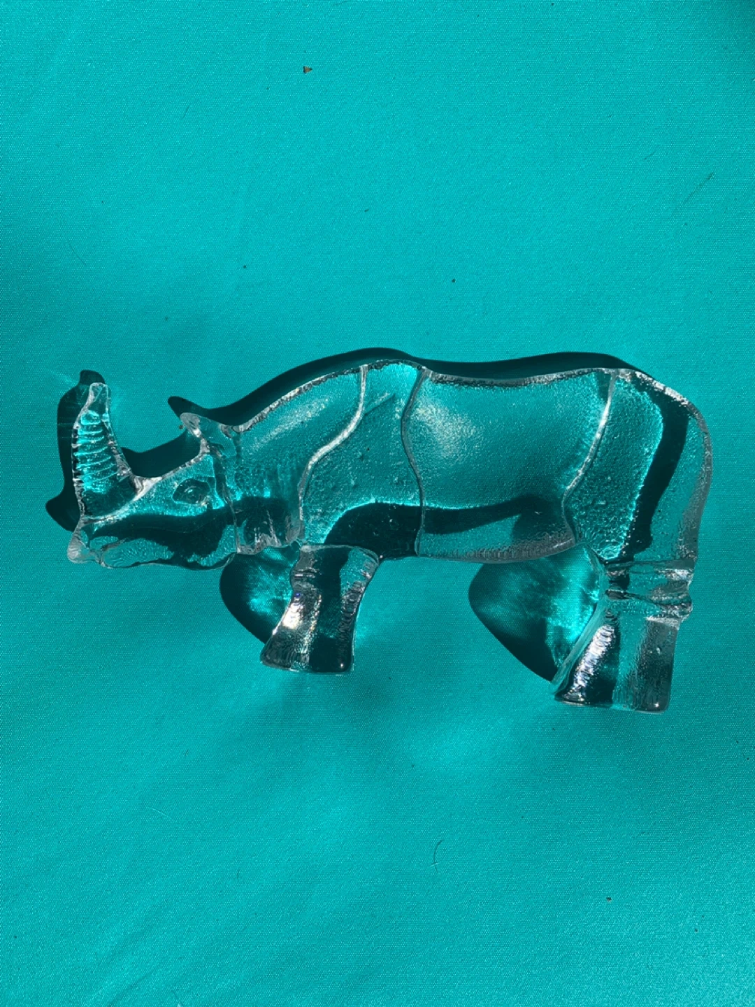 Kosta Boda Zoo rhino figure, Bertil Vallien sculpture-paperweight. Measures 7.5 inches long by 4 inches tall.