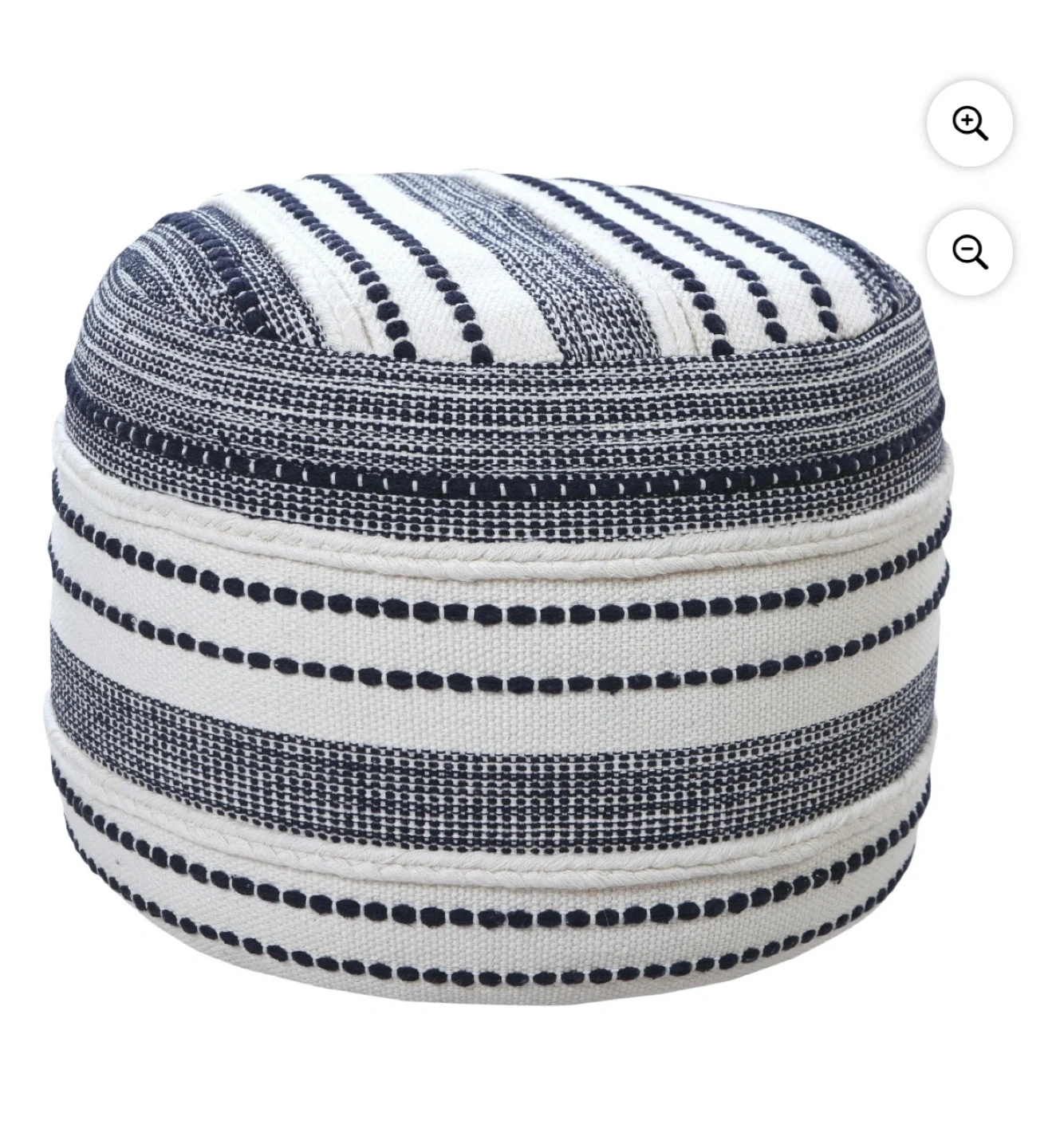 This is a stylish striped round pouf ottoman. It's perfect for adding extra seating or a decorative touch to your living room or bedroom. The neutral colors make it easy to match with any decor