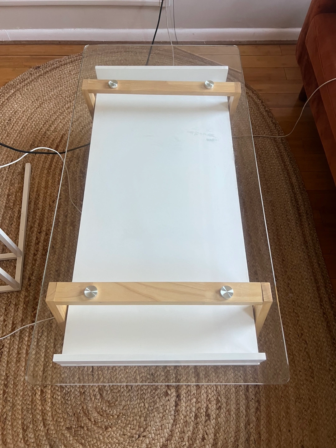 Selling this table as I’m upgrading to a new couch and need a different style. It has some light wear (shown in photos) but is still in great condition with plenty of life left. There’s a small stain on one side, though it can be easily hidden with books or décor on top.