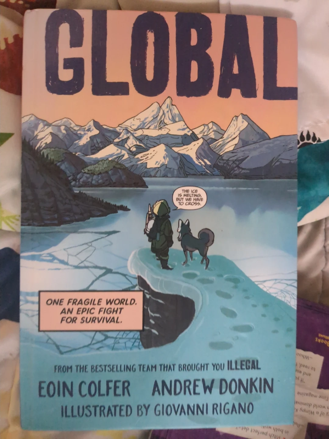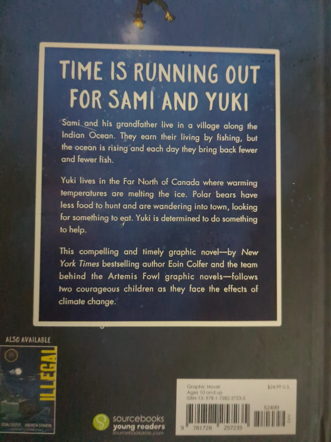 63Selling the graphic novel Global by Eoin Colfer and Andrew Donkin. It's a compelling story about Sami and Yuki and their fight for survival in a world affected by climate change. Perfect for ages 10 and up!